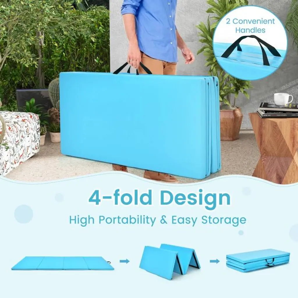 Portable 4-Panel Gymnastics Mat With Carrying Handles For Home Workouts - Blue