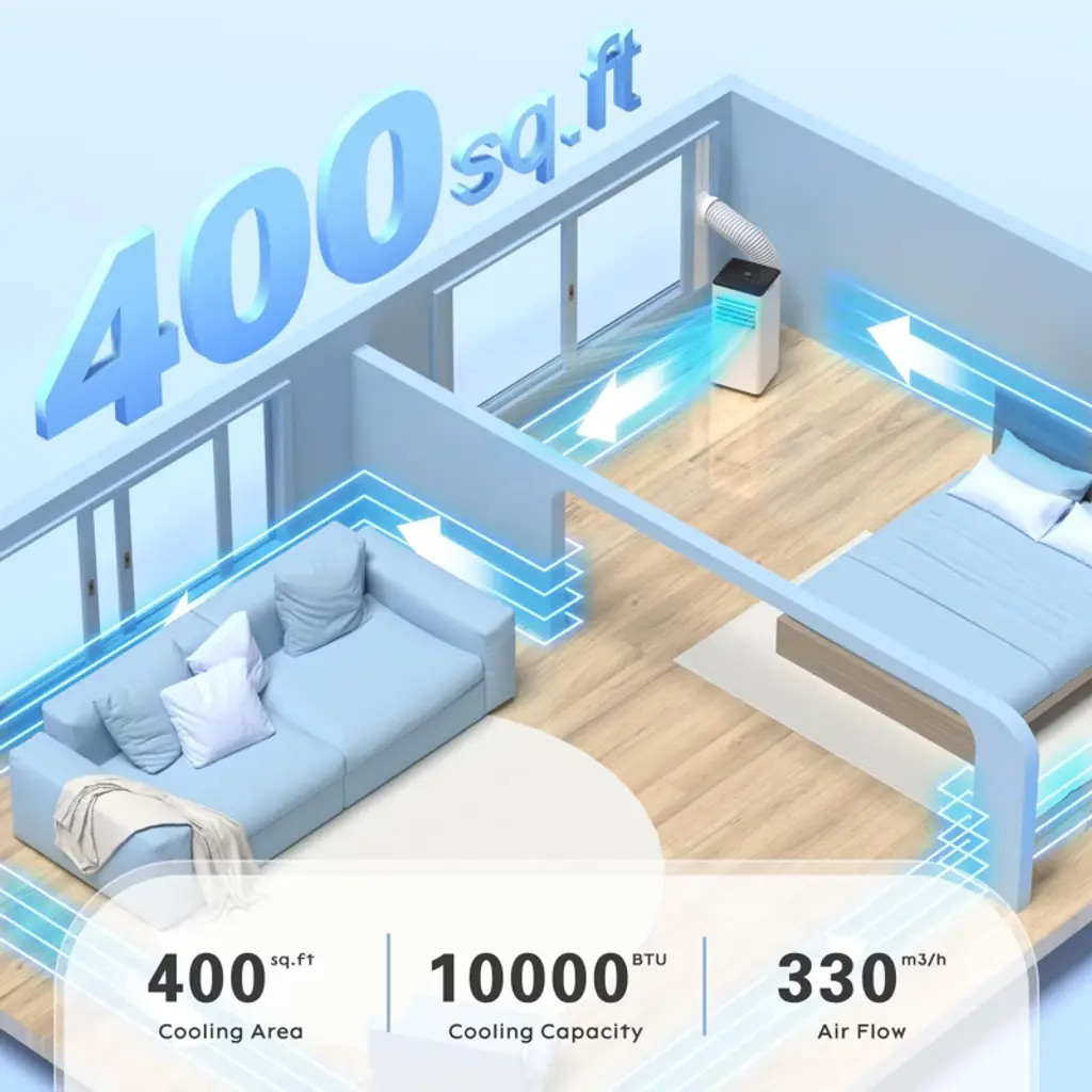 Portable Air Conditioner, 10000 Btu 3 Modes & 2 Speeds With Remote Control, 24h Timer For Bedroom/office, White