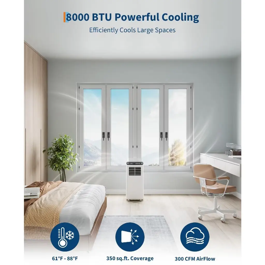 Portable Air Conditioner, 8000 Btu 3-in-1 Ac Unit Cools Up To 350 Sq.ft, Cool/dehumidifier/fan