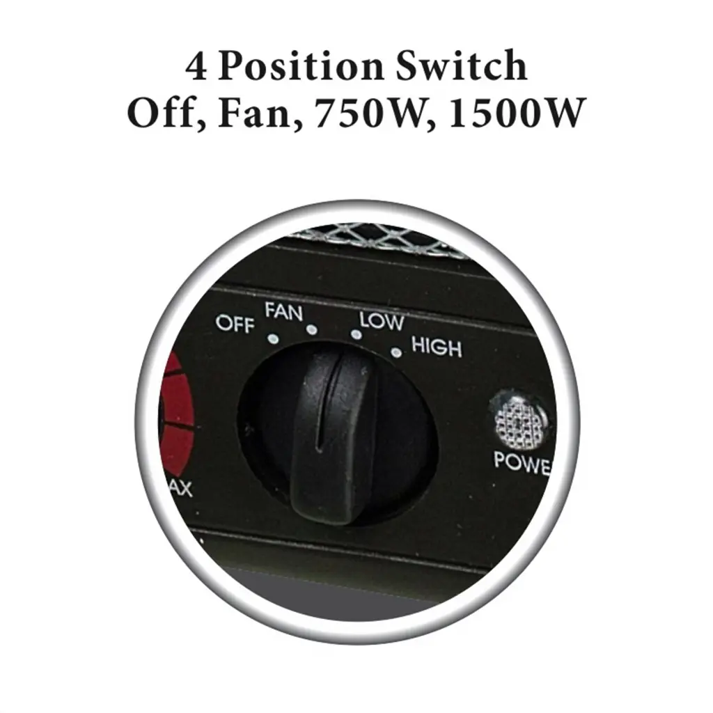 Optimus Portable Ceramic Heater - Compact Comfort, Anywhere You Need It Beat the chill in any room with the Optimus Portable Ceramic Heater-a compact, space-saving solution for fast, targeted warmth. Perfect for homes, offices, or dorms, this heater combines performance and safety in one portable package. Equipped with a 4-position function switch (Off, Fan, Low, High), it gives you versatile climate control with heat settings from 750W to 1500W, plus a Fan Only mode for year-round use. The automatic thermostat control lets you maintain a consistent, comfortable temperature, while built-in safety features-including an internal heat-limiting thermostat and overheat protection circuit-ensure peace of mind during use. Additional features like the power indicator light and space-saving housing make this heater as convenient as it is effective. Whether you need a quick heat boost or continuous warmth, the Optimus Portable Ceramic Heater has you covered.
