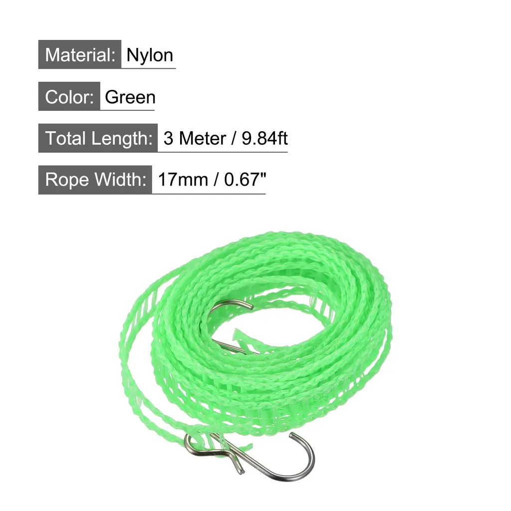 Portable Clothesline, 9.84ft Nylon Windproof Non-Slip Washing Line - Green