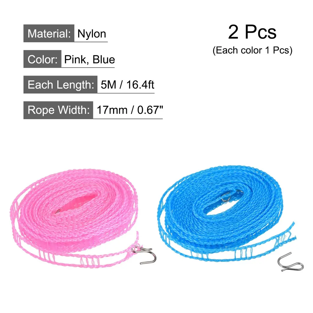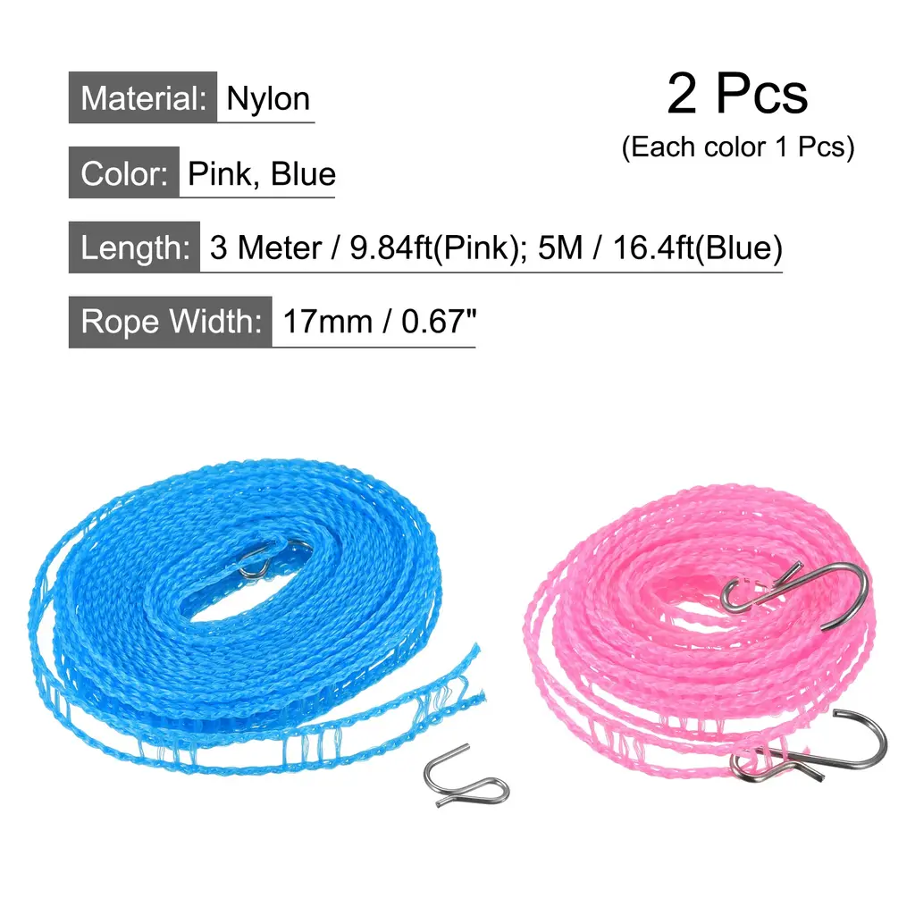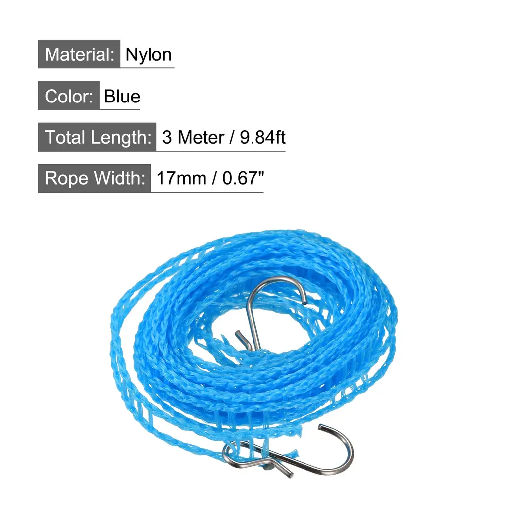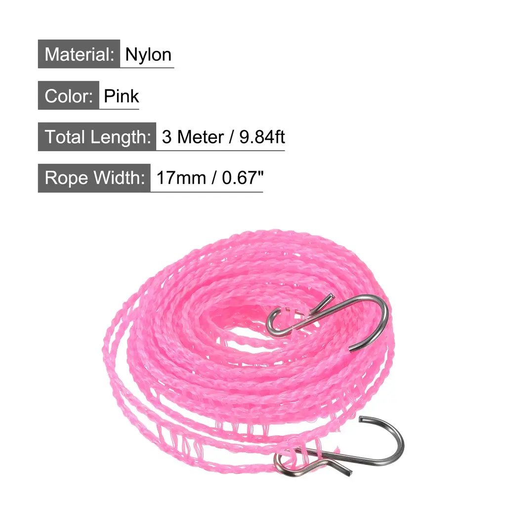 Description:Material - This type of clothesline is woven from nylon rope, which is sturdy, wear-resistant, not easy to age and has a strong load-bearing capacity and long service time.Portable and Lightweight - Easy to store and not occupy space, convenient to carry for travel, camping, etc outdoor activities.Easy to Fasten - Wrap the rope around any place which can withstand the weight of the things you dry and fix it with both side hooks.Windproof and Non-Slip - With fixed position hanging holes design that has convenience for drying clothes by using hangers and to achieve windproof and non-slip. The clothes will not pile up due to strong wind, in case affect the drying speed.Wide Application - Our portable clothesline can be attached anywhere: such as balcony, courtyard, hotel, RV, boat, trees, etc. Great for travel, camping, outdoor and indoor to dry clothes, bed sheets, blankets, towels, scarves and more.Warm Tip - Please wrap the rope a few more times to fasten the clothesline straightly and tightly. So that it will not easy to bend when hanging heavy clothes.Specification:Material: NylonTotal Length: 3 Meter/9.84ftRope Width: 17mm/0.67inchPackage Content:1 x Clothesline