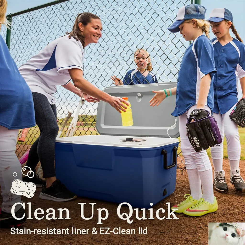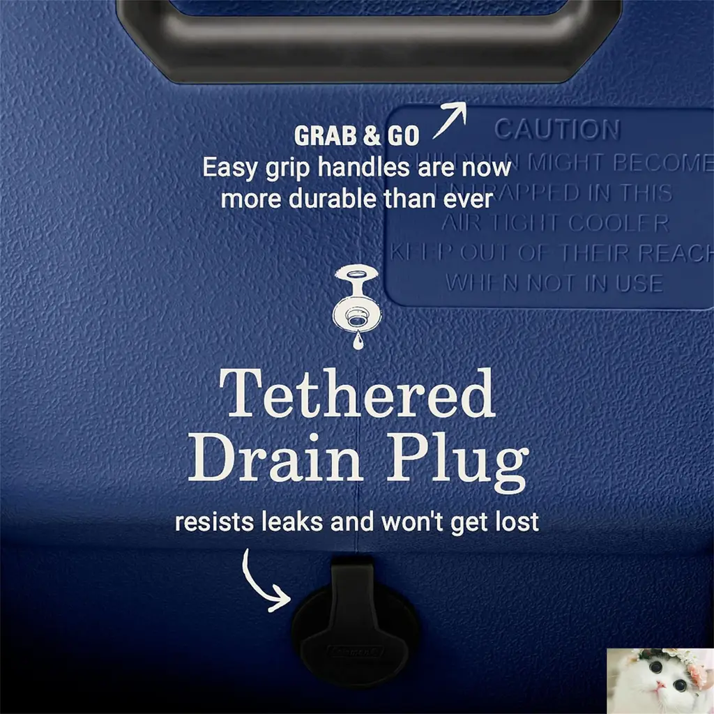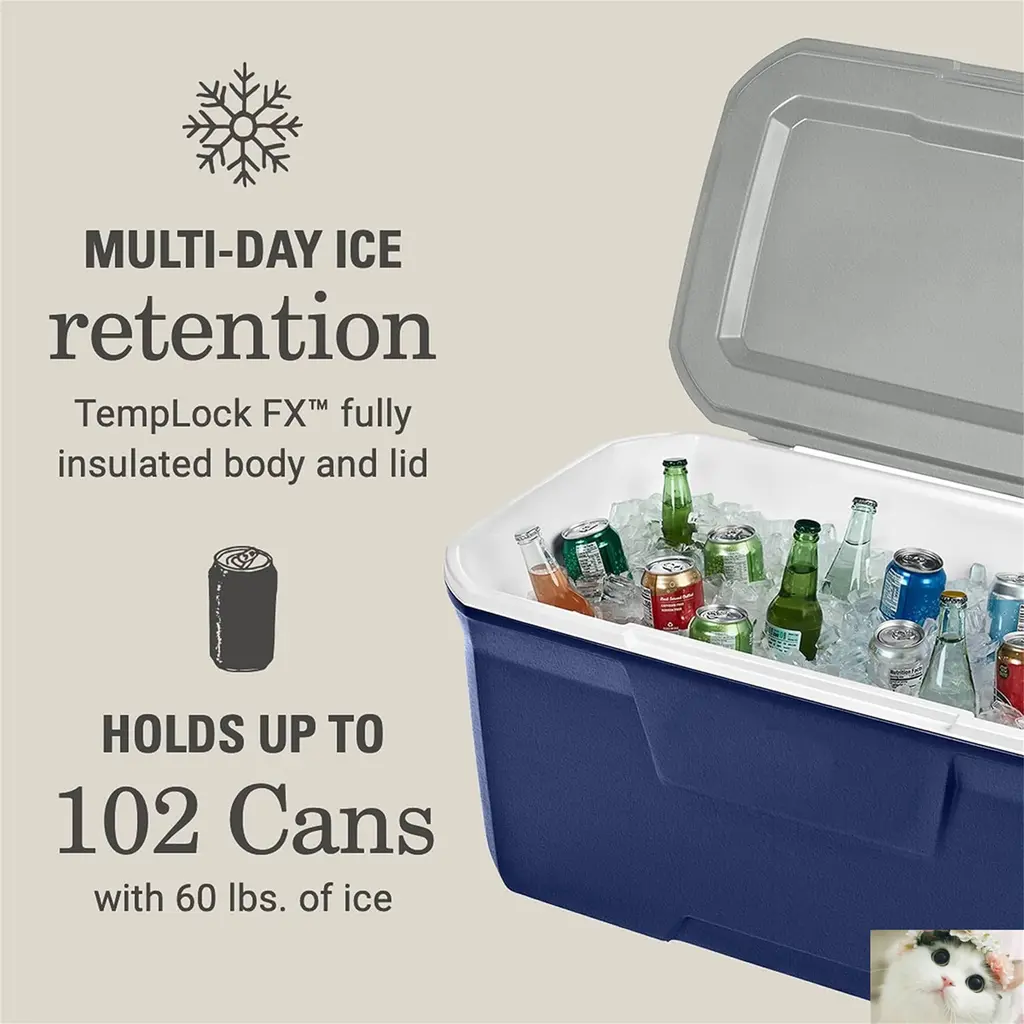 KEEP IT COLD: TempLock FX Insulation throughout delivers multiday ice retention UPGRADE: The 316 Series is made with 15% less plastic than comparable coolers LOSE THE LEAKS: Tethered drainplug resists leaks and won't get lost GRAB & GO: Easy-grip handles are now more durable than ever ENJOY A BIG SIP: Four cup holders prevent spills; each holds up to a 30 oz tum TAKE A LOAD OFF: Sturdy Have-A-Seat Lid supports up to 250 lbs. CLEAN UP QUICK: Stain-resistant liner & the EZ-Clean lid make cleanup a breeze GO BIG: 120-quart size holds up to 102 cans and 60 lbs. of ice