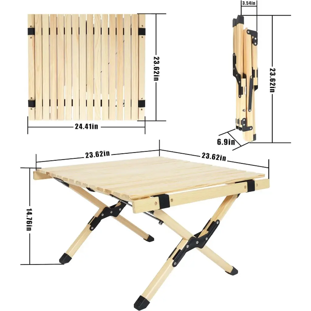 Portable Foldable Outdoor Picnic Table - Natural Beech Wood Camping Table With X-frame Design -Small Sizes