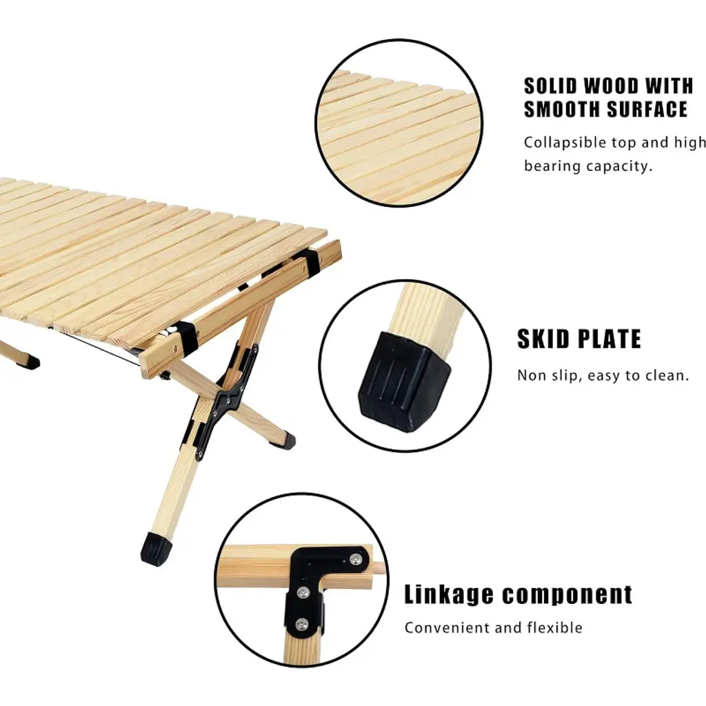 The desktop is made of natural birch wood, with clear and beautiful textures that exude a natural atmosphere and can perfectly blend with the natural environment of the camping site. Birch wood is tough, has good load-bearing capacity and durability, and is not easily damaged even in the event of minor collisions during outdoor use. At the same time, the specially treated birch wood has a smooth and delicate surface, which not only feels comfortable to the touch, but is also easy to clean. After dining, simply wipe it to keep it clean.