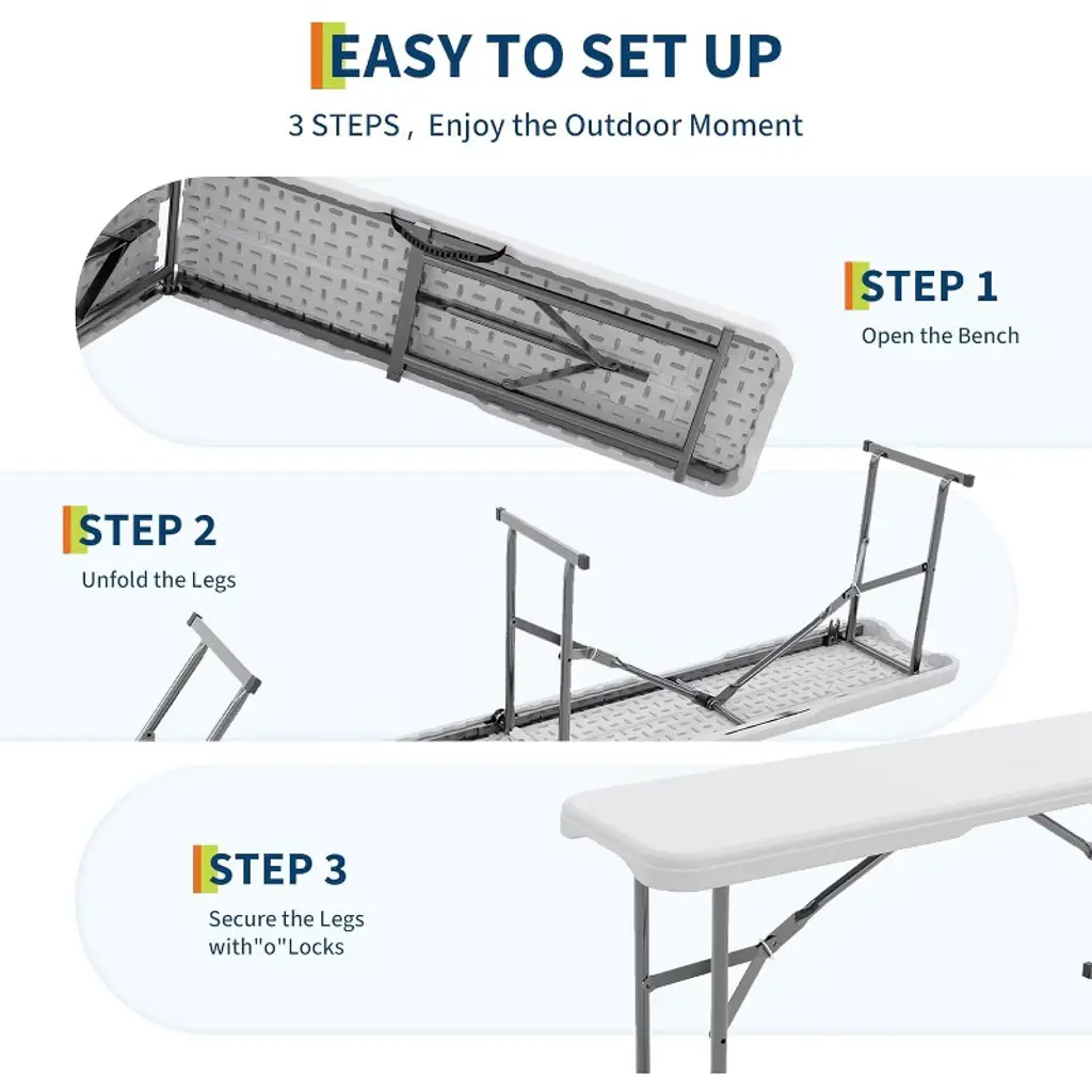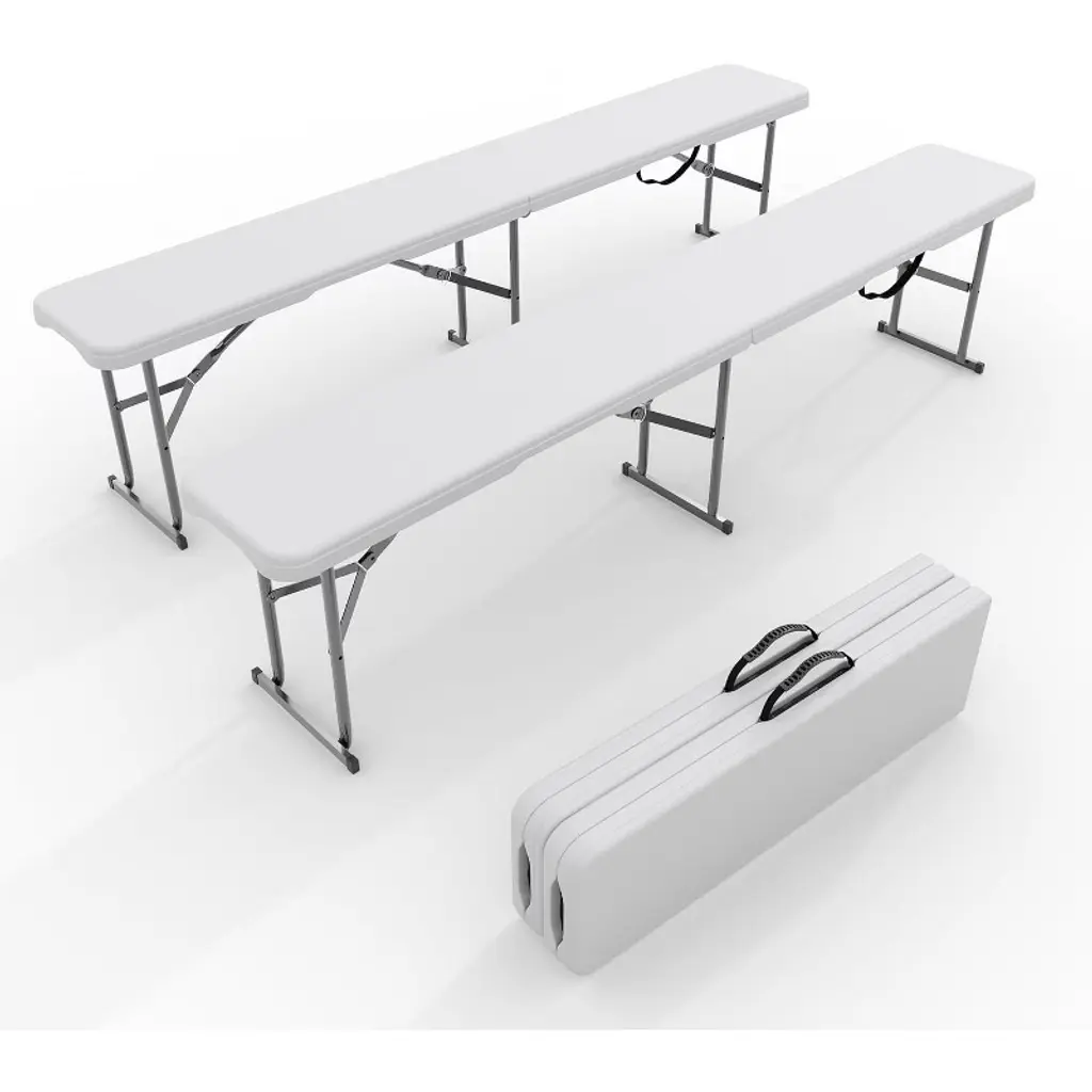 Portable Folding Bench 6 Foot 2 Pack, Plastic Foldable Bench Hdpe Benchtop With Carrying Handle