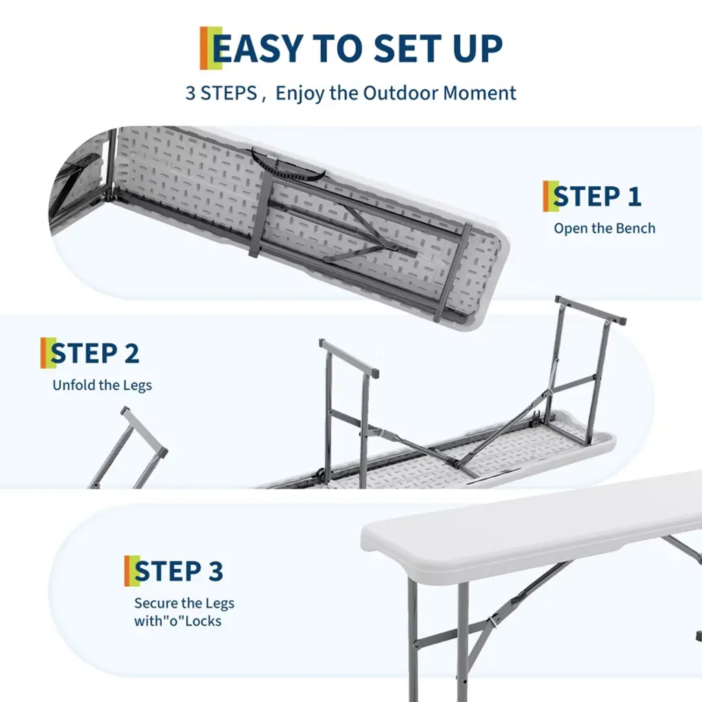 Portable Folding Bench 6 Foot, Plastic Foldable Bench HDPE BenchTop with Carrying Handle for Outdoor Picnic Camping Party Sports Activities