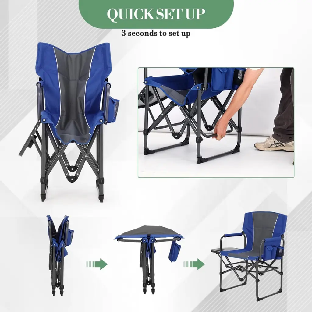 Portable Folding Camping Chair, Directors Chairs With Side Table, Drink Holder, Durable Armrests, Supports 400lbs, Foldable Chairs For Beach, Fishing