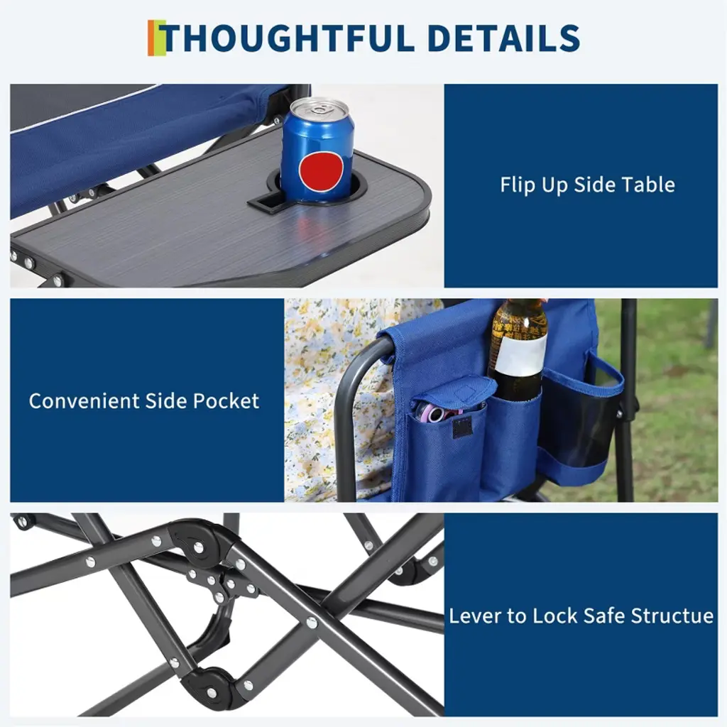 2 Pack Folding Camping Chair with Side Table Drink Holder, Portable Folding Rocking Chair, Directors Chairs with Armrests, Comfortable Backrest for Sports Event, Makeup Artist, Craft Show, Fishing