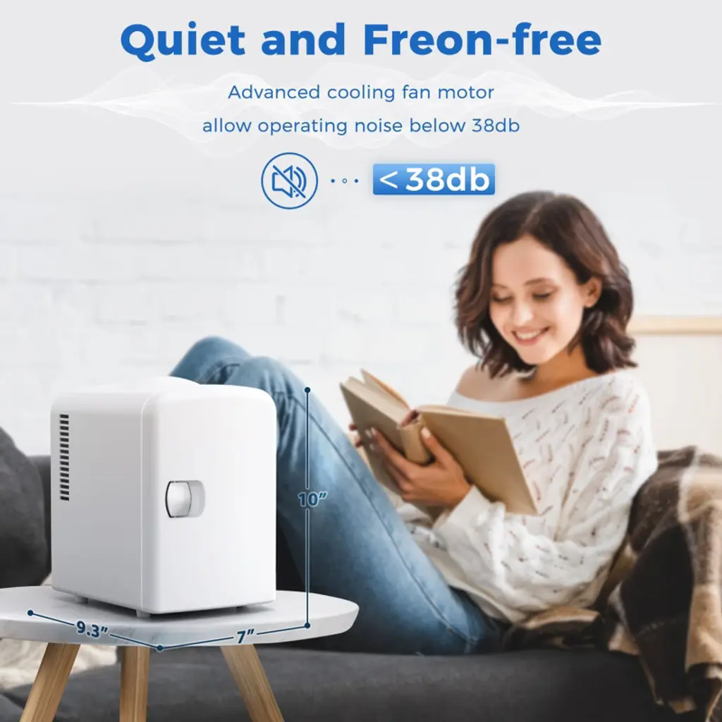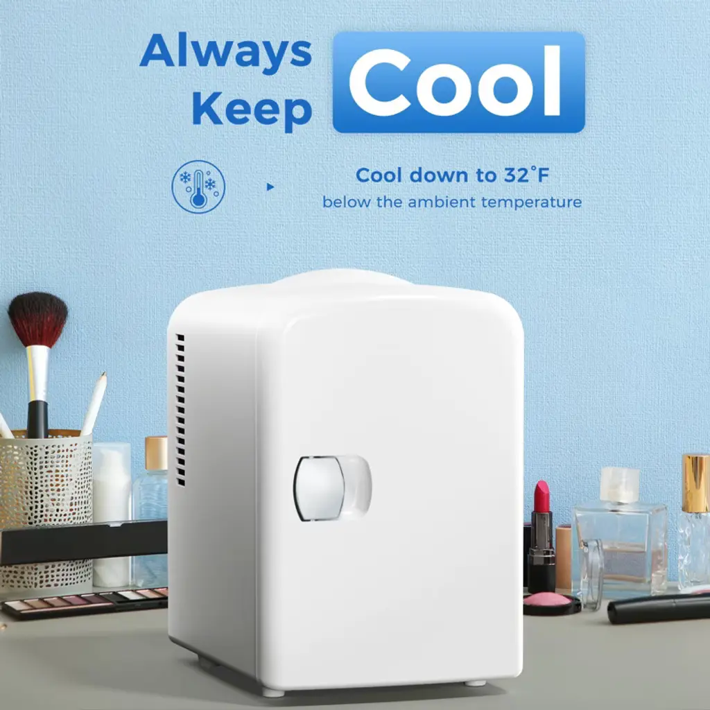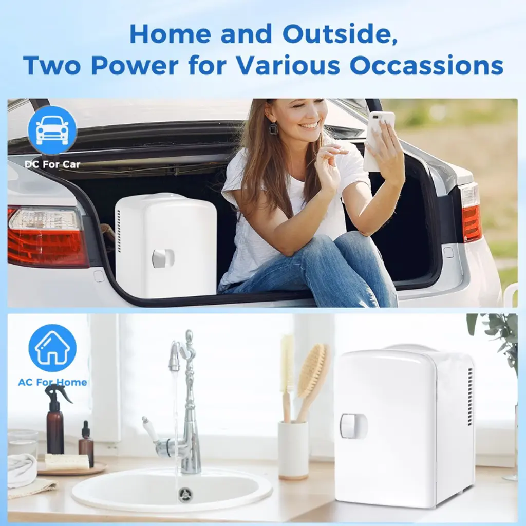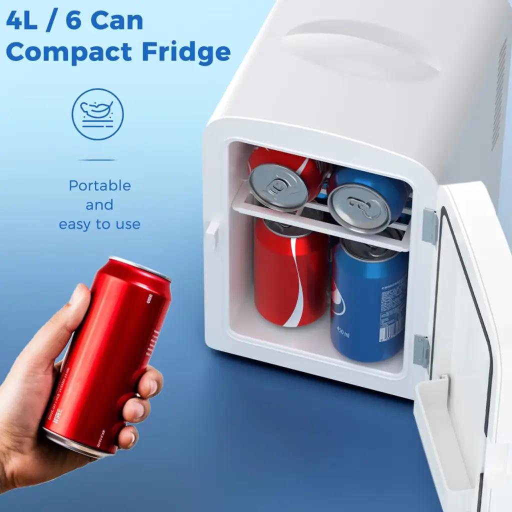 The mini fridge is the perfect companion for your daily life, whether you need to keep your drinks chilled, snacks fresh, or skincare products cool. Its compact size fits seamlessly into any bedroom, office, or dorm, and it's just as handy for road trips, camping, or boating adventures. Designed for convenience and portability, this fridge easily plugs into both home outlets and car power sources, making it a must-have for those always on the go. Plus, with its whisper-quiet operation, you can enjoy a peaceful night’s sleep or an undisturbed workspace. Keep your essentials fresh, wherever life takes you!