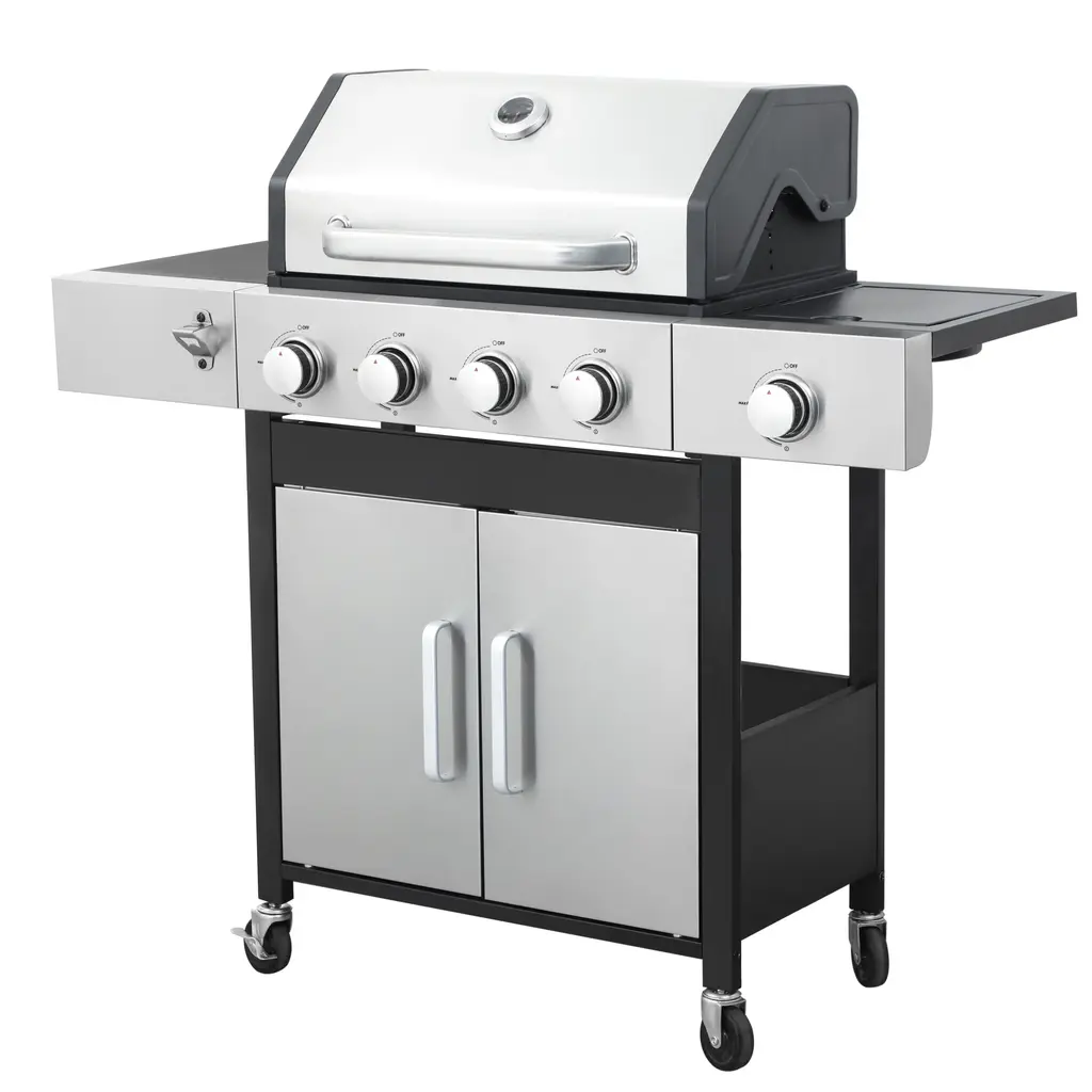 This propane gas grill has 3 or 4 stainless steel burners, can put out 37230 BTU-per-hour or 46790 BTU-per-hourwith integrated automatic easy ignition system, quick start up with the push and turn of a control knob. An even heat cooking system with stainless steel burners and cast iron cooking grates work together to distribute consistent heat across the entire grilling surface while reducing flare-ups. The grill is built to last and designed to grill amazing tasting food.Features: