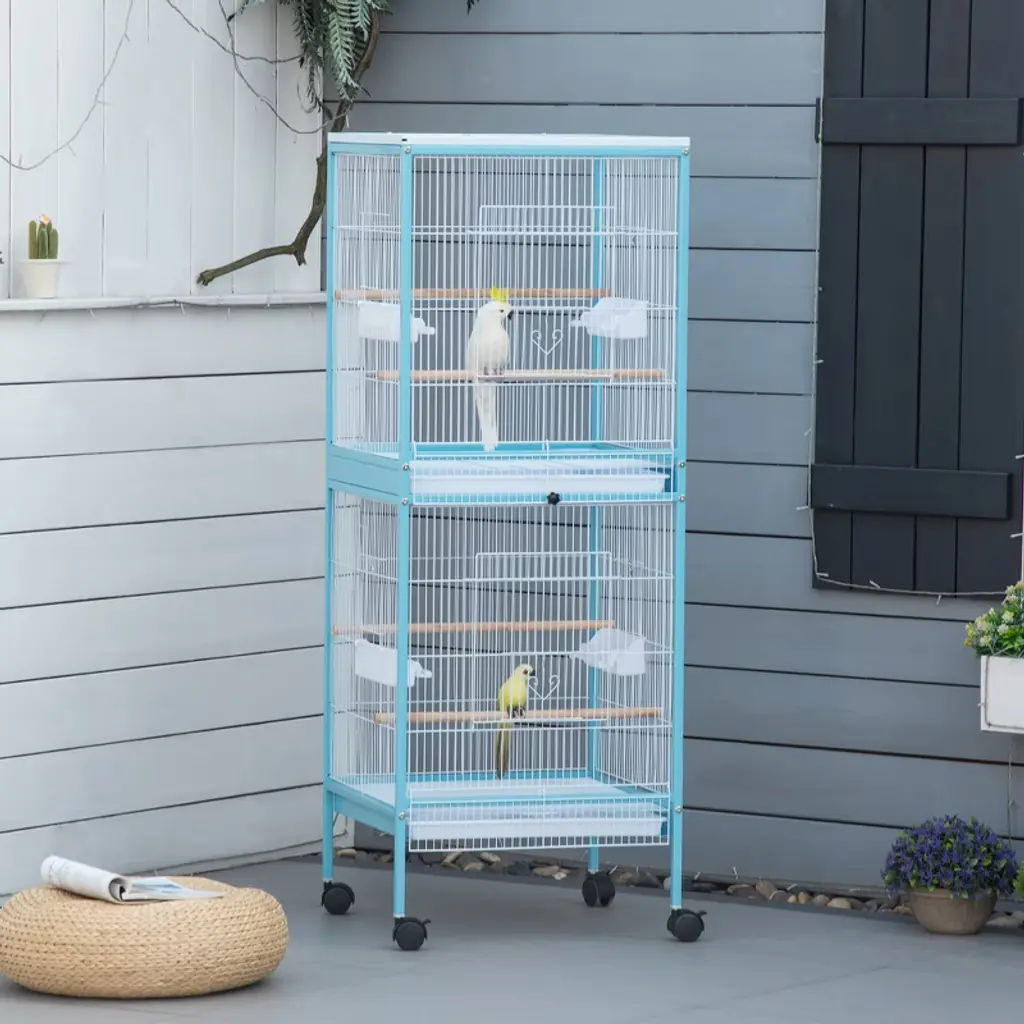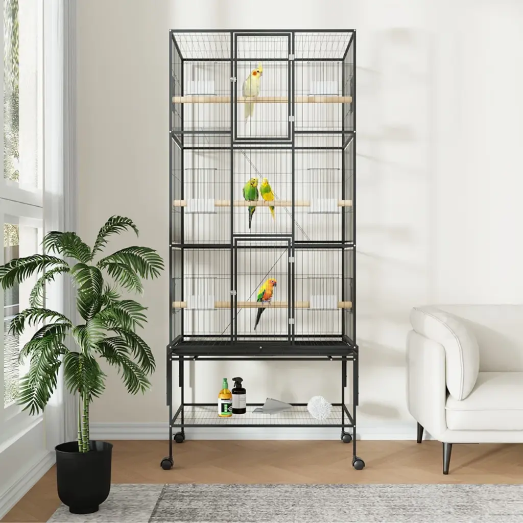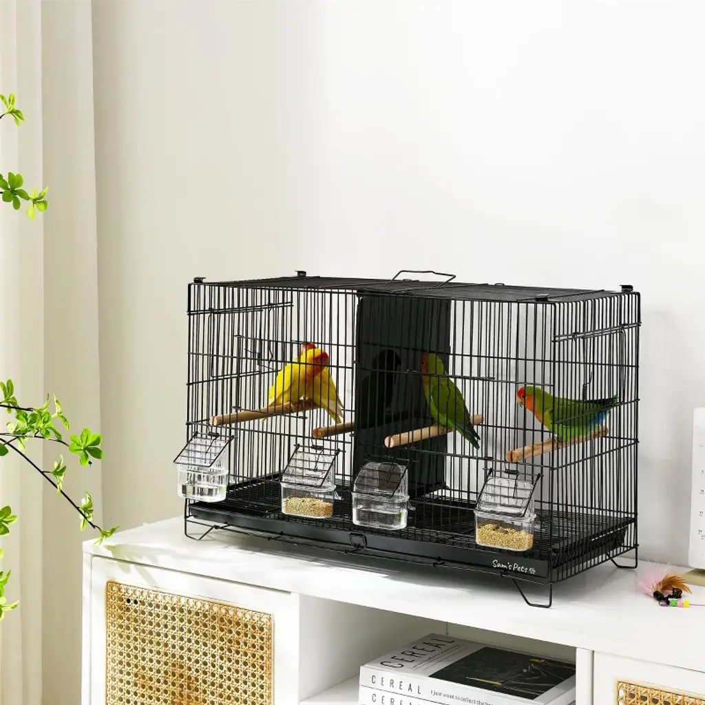 【Durable Premium Metal Frame】Constructed from high-quality metal, this bird cage offers robust strength and stability, ensuring a safe and secure environment for your feathered companions.【Complete Accessories Included】This bird cage comes with 2 transparent plastic boxes, 2 standing rods, a plastic drawer bottom tray, and a swing—perfect for housing small birds like parakeets, canaries, and finches.【Spacious and Decorative】The cage features preset external hanging ports on both sides for attaching boxes, bathing trays, or food containers. You can also hang bird toys or add potted plants to enhance the cage’s appearance.【Portable and Convenient】Its compact size and lightweight design make it easy to transport, ideal for travel or temporary housing for your birds.【Easy to Clean】Equipped with a slide-out drawer tray and removable shelves, this cage allows for effortless cleaning and easy monitoring of your birds’ environment.