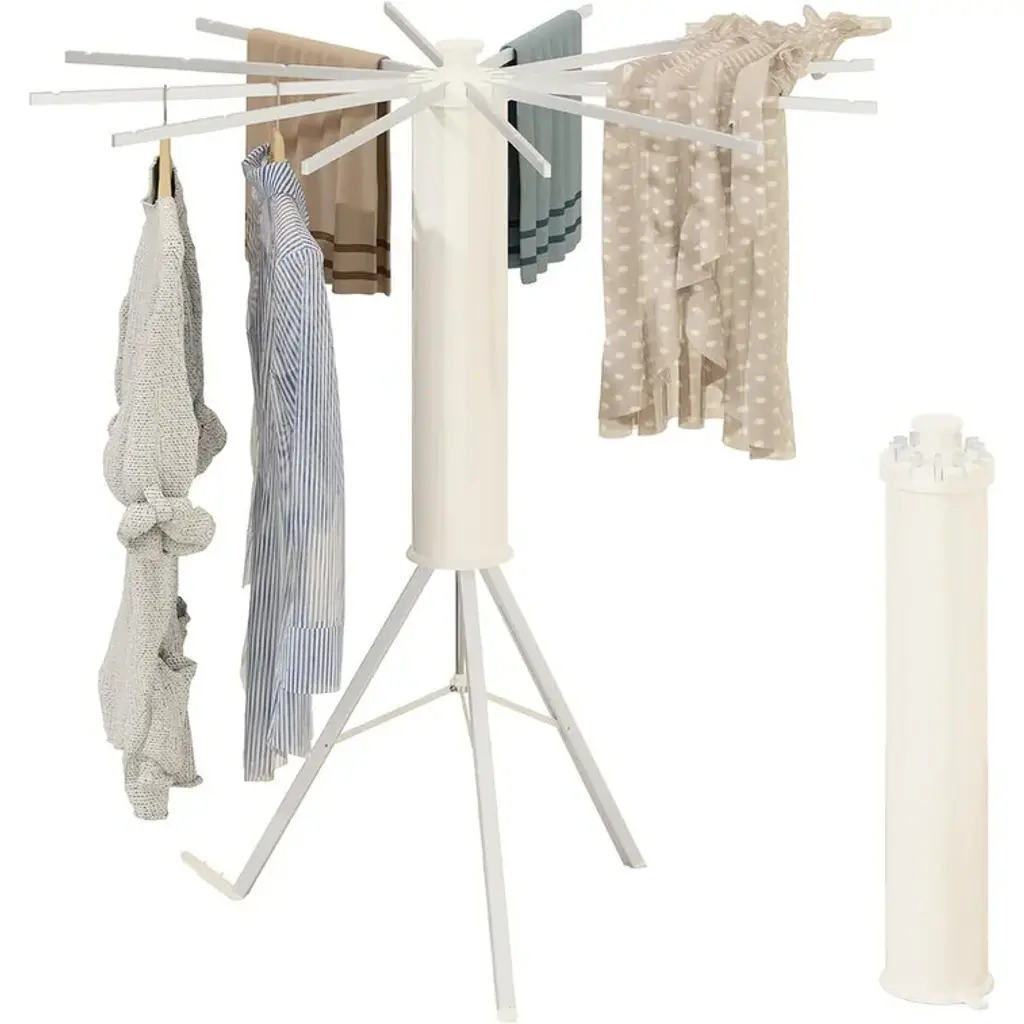 1. **Innovative Retracting Tech**: This tripod drying rack features a one-step retract system, making it easy to fold the legs beneath the rack for compact storage. 2. **Portable and Foldable**: The lightweight design allows for effortless transport, making it perfect for small apartments or for taking on trips. 3. **Multi-Functional Use**: With a large capacity for drying clothes, blankets, and more, this rack adapts to different needs, helping you stay organized. 4. **Sturdy and Reliable**: Made from high-quality wood, this drying rack can hold up to 45 lbs, ensuring stability while in use. 5. **Versatile Applications**: Ideal for both indoor and outdoor drying, this drying rack can be set up in various locations, from laundry rooms to balconies.