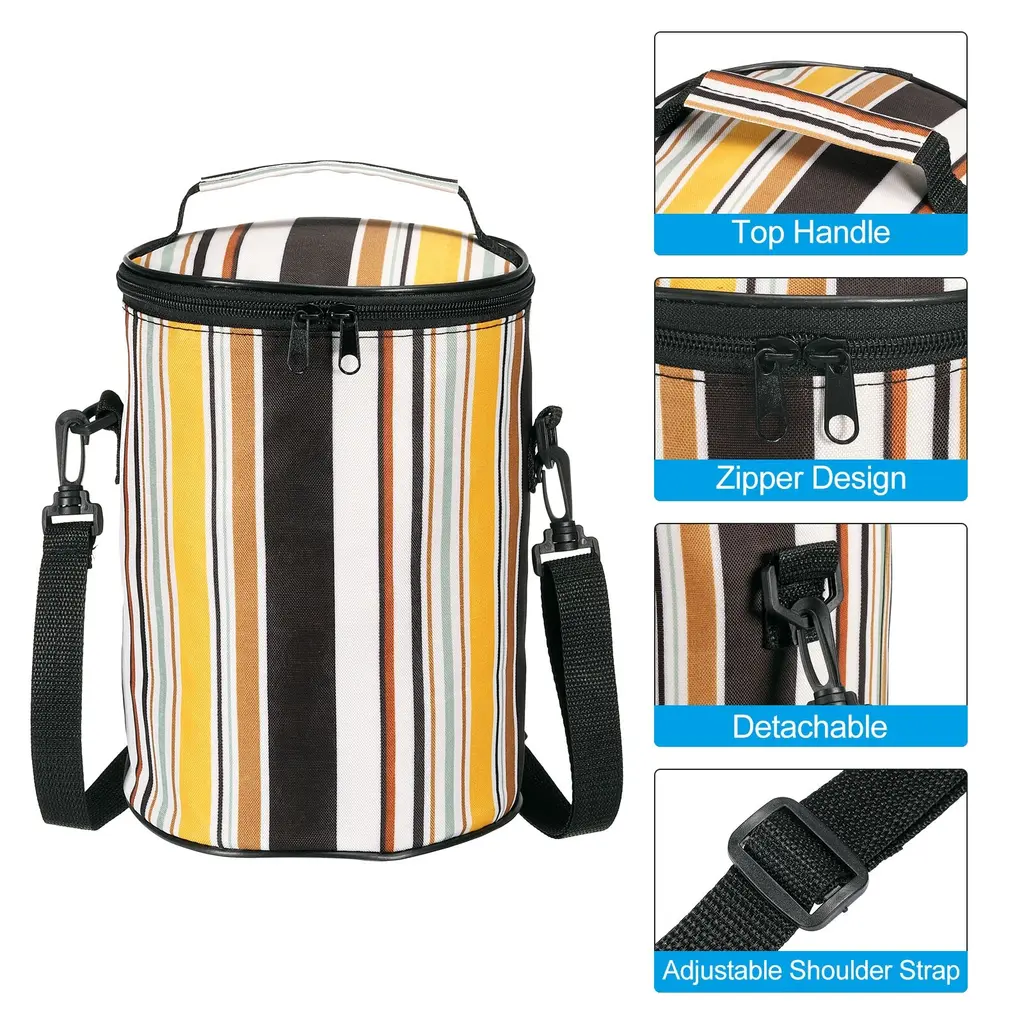 The insulated lunch bag can be used in offices, picnics, camping trips, travel, or any other outdoor activities. You can pack a variety of foods and drinks, including sandwiches, salads, fruits, and more. It is great for keeping your lunch fresh and delicious, no matter where you are.SpecificationColor: MulticolorMaterial: Oxford Cloth, Cotton, Aluminum FilmSize: 17.5 x 25 cm / 6.9 x 9.8 inch(Dia.*H)Packing List: 1Pcs x Portable Lunch BagAdvantageThe lunch box bag is made of waterproof Oxford cloth, which is durable and tear-resistant. The interior is equipped with thermal insulation cotton and aluminum film to avoid heat and effectively keep warm and cold, easy to clean.Zipper on the side, easy to open and close. The handle and adjustable shoulder strap design is convenient for carrying.InstructionPack your favorite foods and drinks into the lunch tote and close it securely. Make sure all closures are properly fastened to prevent spills and leaks. When you are ready to eat, simply open the bag and enjoy your fresh and delicious meal.NOTE:1. After use, wipe down the tote bag with a damp cloth or sponge to clean off any spills or dirt. Let it air dry before storing it away.2. This item is not intended for use by 12 and under.