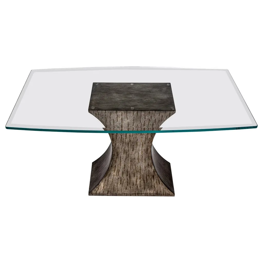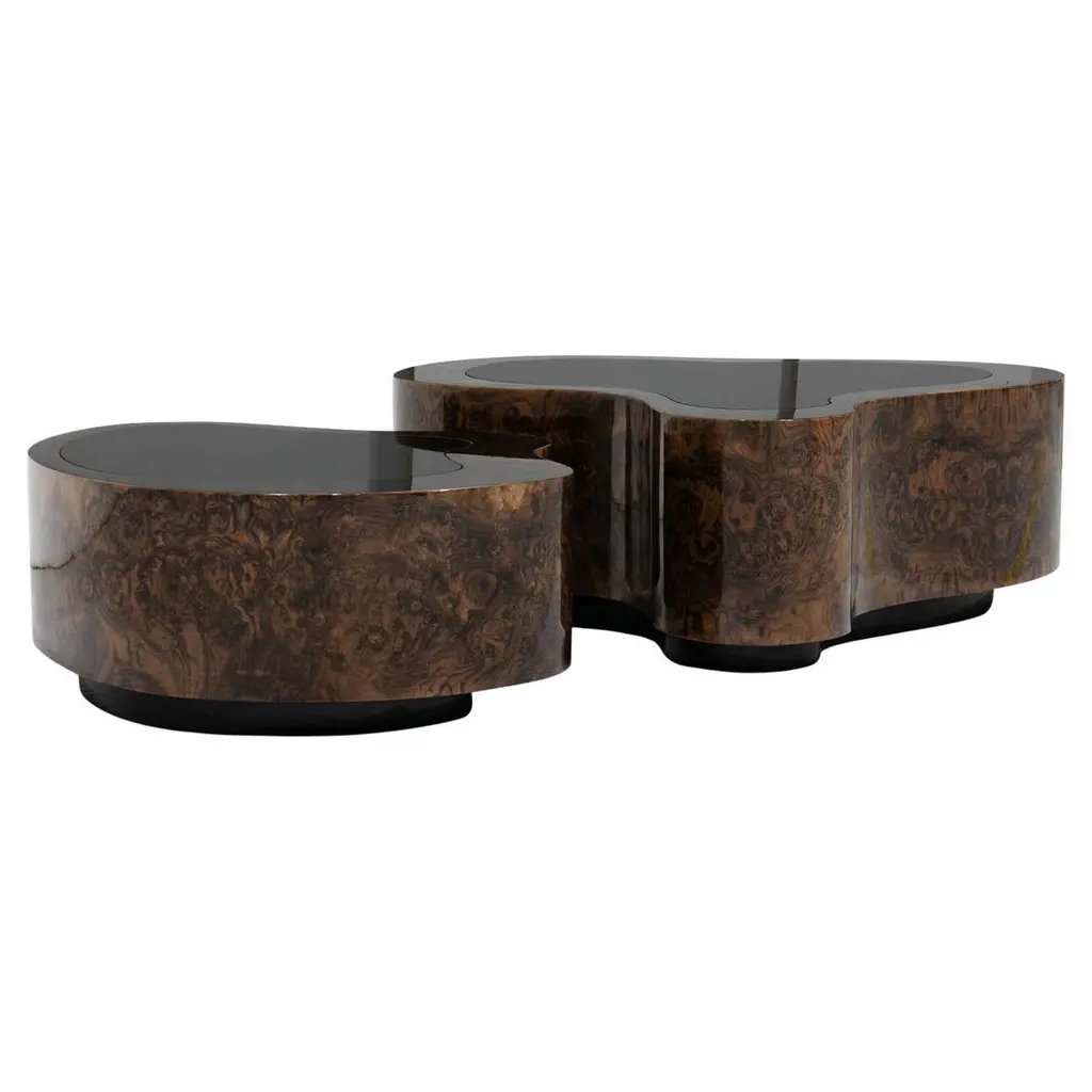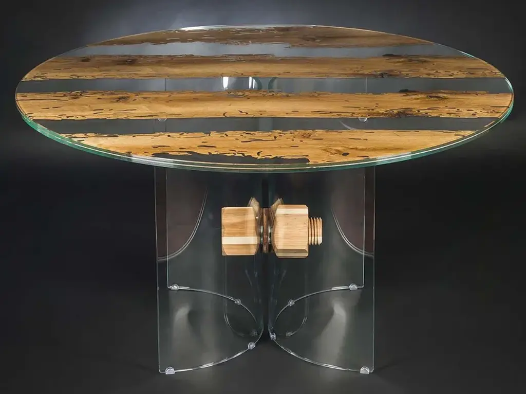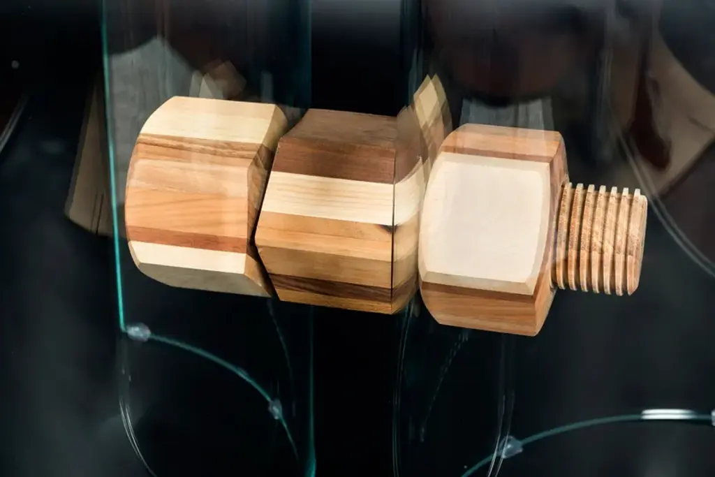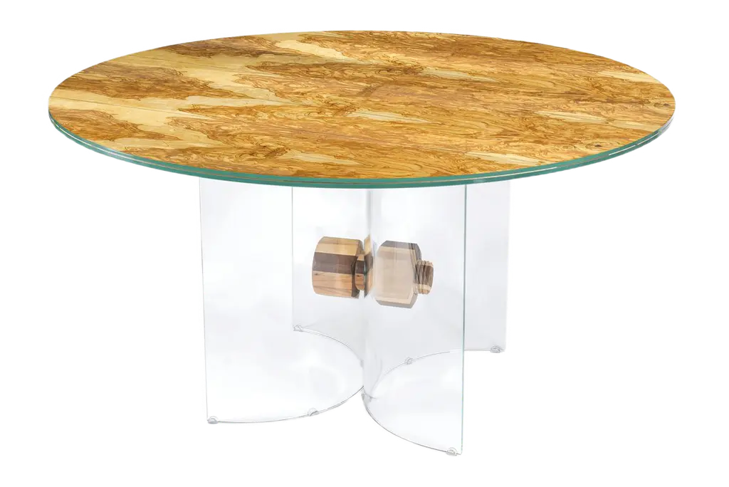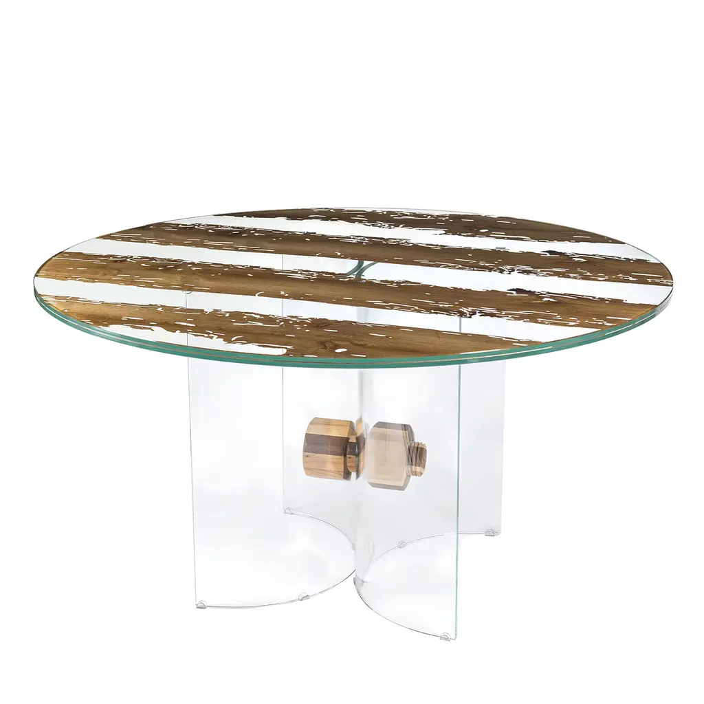 Centuries old olives, together with the transparency of the Mediterranean sea, are the stars of the beautiful hues and aromas of the Ligurian landscape and the source of inspiration for VG's Portofino table.The tabletop is made of two layers of glass 10+10 mm that house a thin section of olive wood.