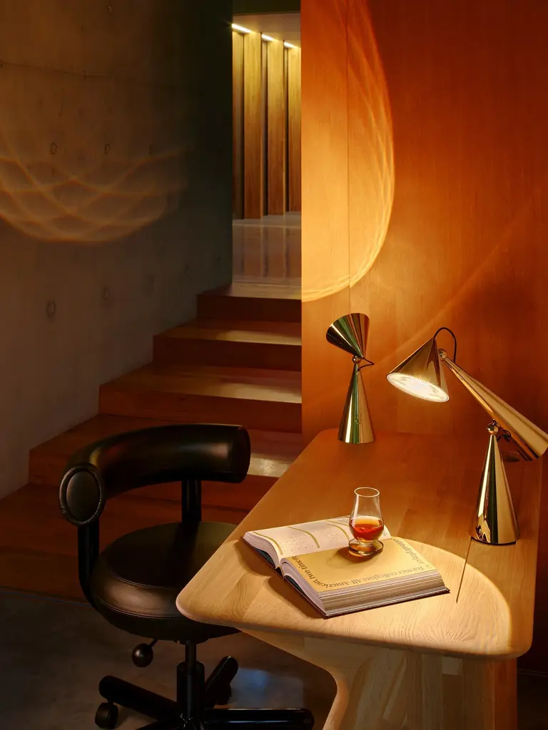 Part of Tom Dixon's Portable offering, the Pose Portable is a high output lamp based on conical forms that playfully explores the world of optical physics, through the world of flat lenses -often seen in lighthouses, traffic lights and in scientific instruments. Pose manipulates light into focused, magnified beams with striking effect. A strong silhouette and touch of humour define its personality, while precise adjustability and high light output ensures adaptability and functionality for any space— domestic or contract.
