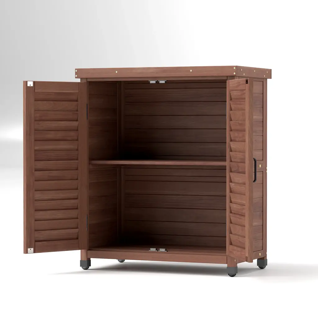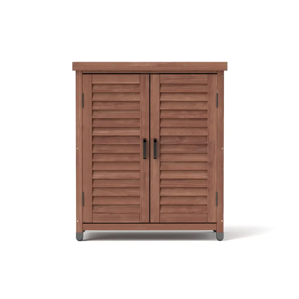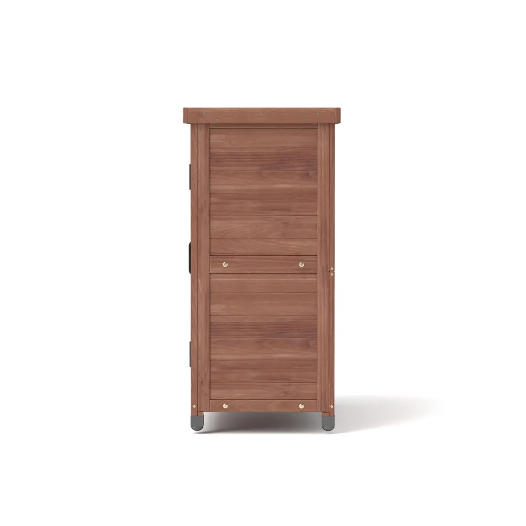 Product FeaturesSturdy Hemlock Wood Construction: This storage cabinet is made from high-quality hemlock wood, known for its strength and durability. It is designed to withstand the elements, making it an excellent choice for outdoor use. Hemlock's natural resistance to decay ensures longevity.Ventilated Screen Door Design: Featuring a unique screen door design, this cabinet allows for superior air circulation, keeping the contents dry and preventing moisture buildup. The breathable design is perfect for storing items that need ventilation, such as gardening tools or outdoor gear.Elegant Brown Finish: The rich brown finish adds a touch of sophistication to any outdoor space. Its warm, natural tone complements a variety of outdoor decors, blending seamlessly with gardens, patios, or decks.Spacious and Functional: Offering ample storage space, this cabinet provides a practical solution for organizing and storing outdoor essentials. From garden supplies to barbecue equipment, it helps keep your outdoor area neat and organized.