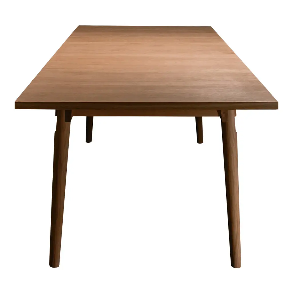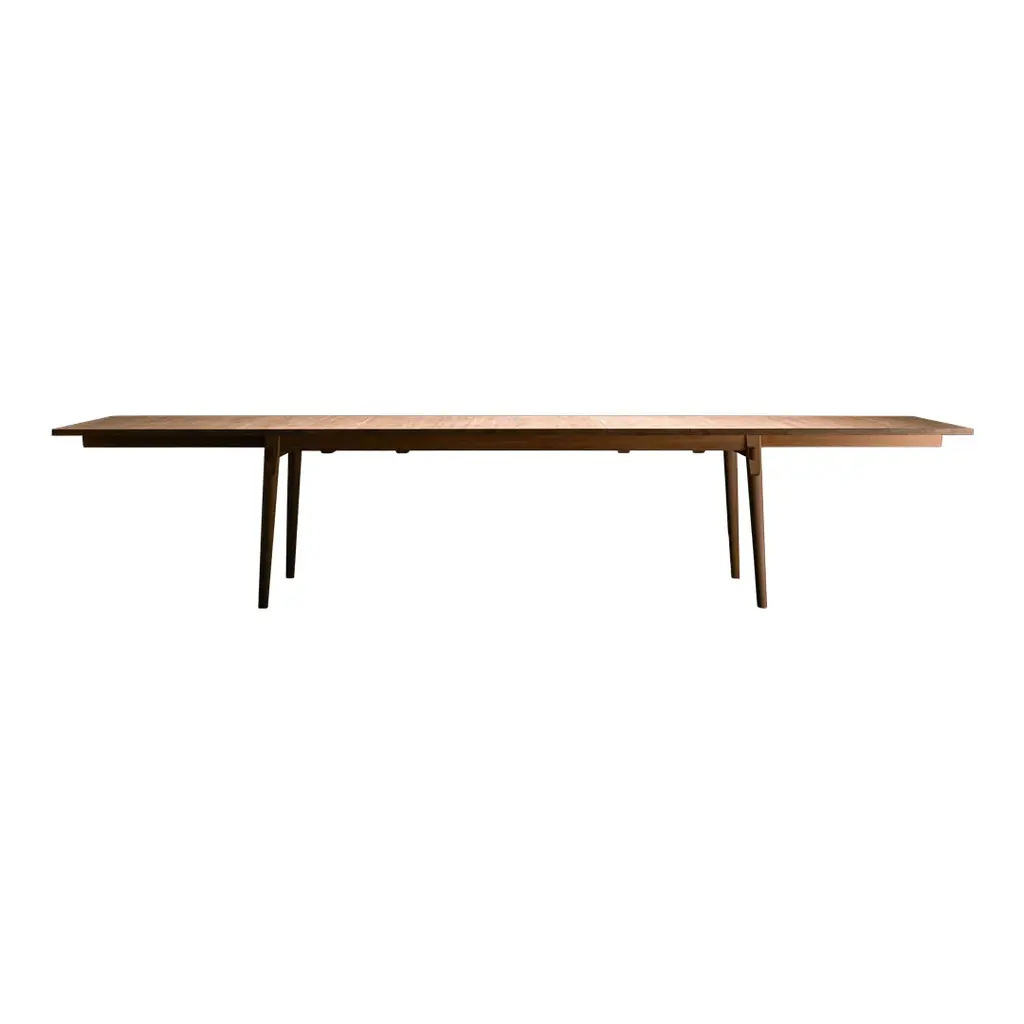 Simple and elegant functionality in solid wood. On Board offers between six and twelve well-proportioned table pieces for dining or meetings. The table can be extended so that in case guests arrive, there will be room for them as well. On Board is an honest, modern version of the classic long table, with the addition of refined details and a high adaptability to a variety of needs. While fulfilling the basic task of being a practical dining table. On Board also takes the aspect of tolerances and accuracy in solid woodwork to a new level. PP850 comes with four leaves for ultimate flexibility. The leaves are stored underneath the table top for easy access. The highest possible flexibility is achieved by the 4 extension leaves that are made in two different widths. This means that pp850 can be extended from the initial 222cm to a maximum of 366cm in 26cm increments. NOTE: This item is made to order by some of the world's best furniture craftsmen using materials that are required to meet PP Mobler's exacting specifications. As such, lead times can vary and are subject to change.