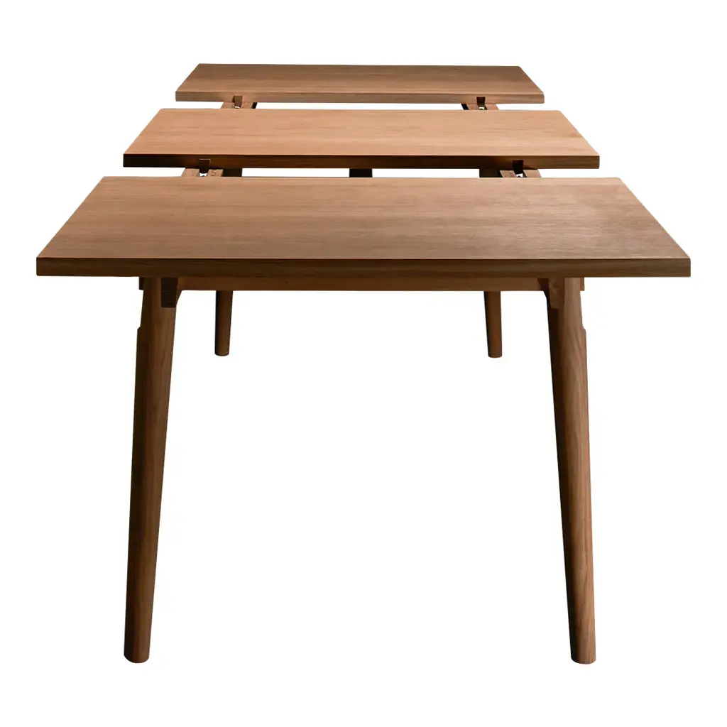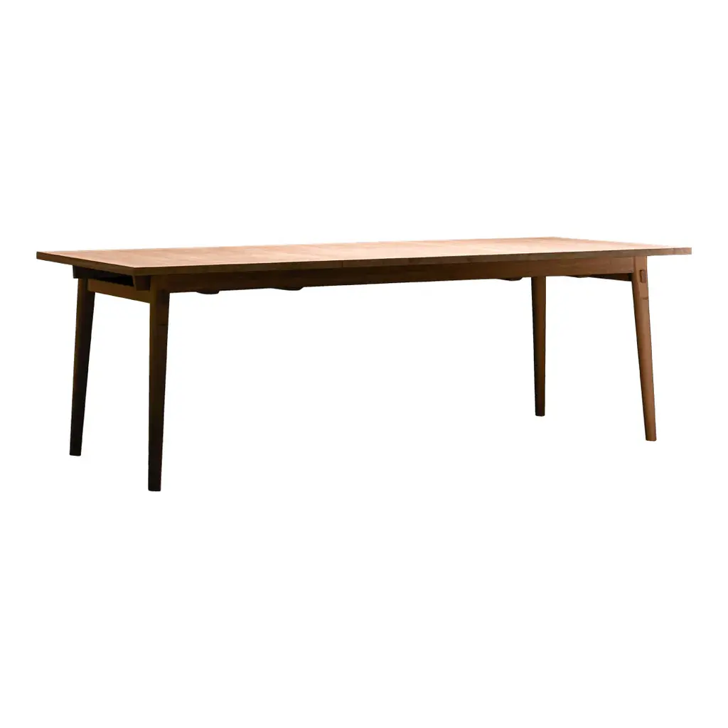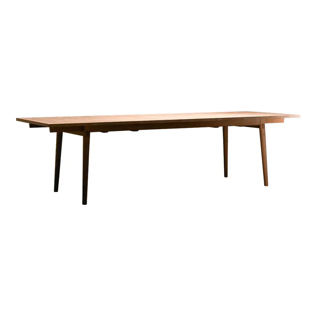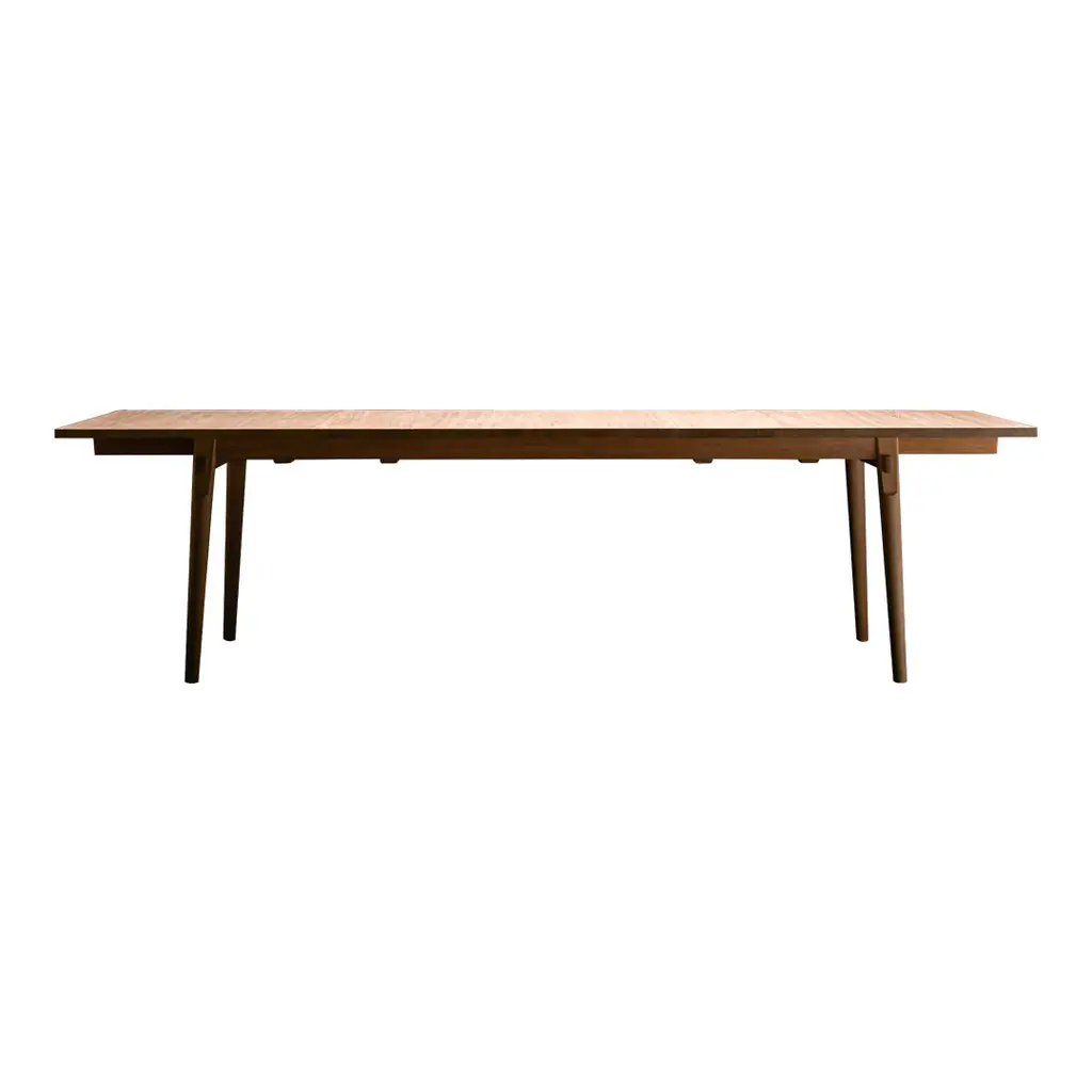 Simple and elegant functionality in solid wood. On Board offers between six and twelve well-proportioned table pieces for dining or meetings. The table can be extended so that in case guests arrive, there will be room for them as well. On Board is an honest, modern version of the classic long table, with the addition of refined details and a high adaptability to a variety of needs. While fulfilling the basic task of being a practical dining table. On Board also takes the aspect of tolerances and accuracy in solid woodwork to a new level. PP850 comes with four leaves for ultimate flexibility. The leaves are stored underneath the table top for easy access. The highest possible flexibility is achieved by the 4 extension leaves that are made in two different widths. This means that pp850 can be extended from the initial 222cm to a maximum of 366cm in 26cm increments. NOTE: This item is made to order by some of the world's best furniture craftsmen using materials that are required to meet PP Mobler's exacting specifications. As such, lead times can vary and are subject to change.