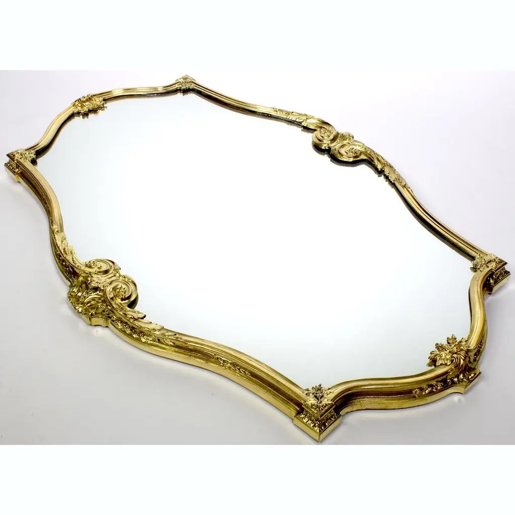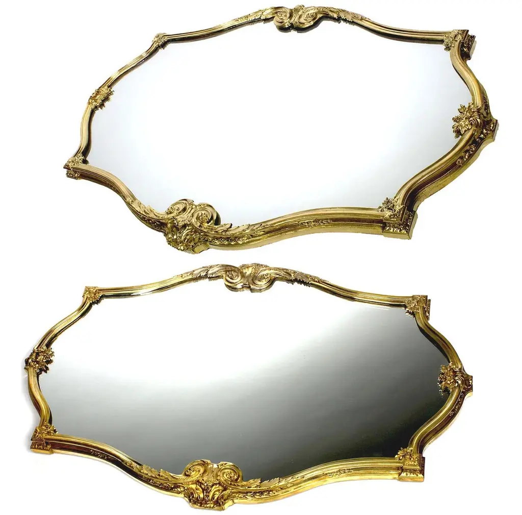 A fine pair of French 19th-20th century Louis XV style gilt-bronze surtout-de-Table plateau centerpieces by the Parsian Orfèvre Paul Canaux et Cie. The ovoid shaped gilt-bronze bodies with floral, acanthus and leaves design fitted with a mirror plate. These pair of plateau's were manufactured by the workshop of Paul Canaux et Cie. in Paris during the period between 1892 and 1911. One stamped "P. Canaux et Cie Orfèvres - Paris" on the underside. Circa: Paris, 1900.Paul Canaux was a manufacturer jeweler-silversmith, active at 30 rue des Francs-Bourgeois in Paris, succeeding the silversmith and plater Joseph Mégemond, he entered his hallmark on 9 August 1888. Paul Canaux based his an anvil as symbol hallmark on that of his predecessor Mégemond. He was a manufacturer of silverware, cutlery, tea sets, centerpieces, serving dishes, plateau's and other silver and gilt-bronze objects d'art. His maker’s hallmark was struck off on the 12th of April 1892 and at the same date a new maker’s hallmark "PC & Cie" was registered, as the house changed its name to "Paul Canaux et Cie".Paul Canaux & Cie. still manufacturer jeweler-silversmith, now at 30 boulevard Malesherbes, but moved to 127 rue de Turenne, also in Paris, around 1889.Measures: Length: 29 1/4 inches (74.3 cm)Width: 19 inches (48.3 cm)Height: 1 1/2 inches (3.8 cm).