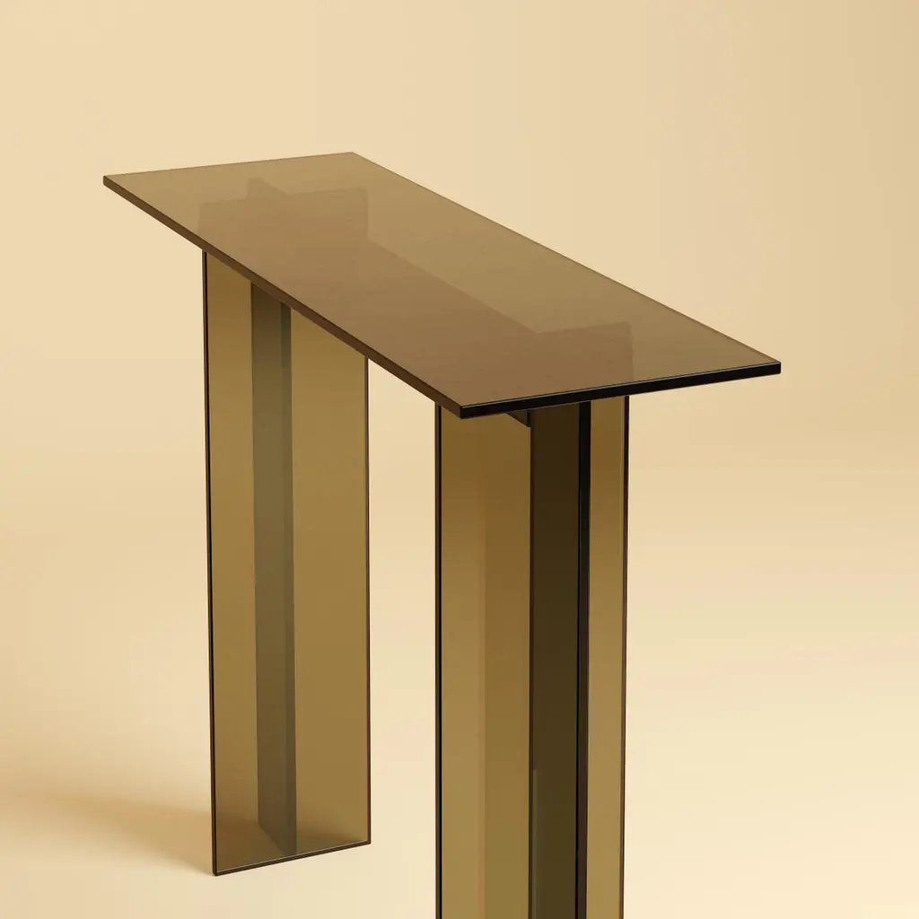 Naz Console Table by Lebanto – Sleek Glass Design in Bronzed FinishThe Naz Console Table by Lebanto is a stunning blend of contemporary design and Italian craftsmanship. Made from premium glass, this elegant console table is available in bronzed or smoked finishes, adding a sophisticated touch to any space. Its sleek, minimalist design creates a sense of openness, making it perfect for modern entryways, living rooms, or office spaces.Handcrafted in Italy, the Naz Console Table combines functionality with a refined aesthetic. The bronzed finish offers a warm, luxurious tone, while the smoked glass brings a modern, cool vibe, allowing you to choose the style that best suits your décor. Designed to enhance your home with its clean lines and reflective surfaces, this table is ideal for showcasing art, décor, or everyday essentials.Key Features:Premium Glass Construction: Available in bronzed or smoked finishes for a luxurious, contemporary look.Sleek and Minimalist: Perfect for modern and contemporary interiors, adding a sense of lightness and elegance.Handcrafted in Italy: Designed and crafted by skilled artisans with an emphasis on quality and detail.Versatile Design: Ideal for entryways, hallways, or living spaces as a stylish and functional accent piece.Elevate your space with the Naz Console Table by Lebanto, where Italian craftsmanship meets sleek, modern design. This glass console table is the perfect statement piece for any sophisticated home.Order Now and bring a touch of Italian elegance to your home!