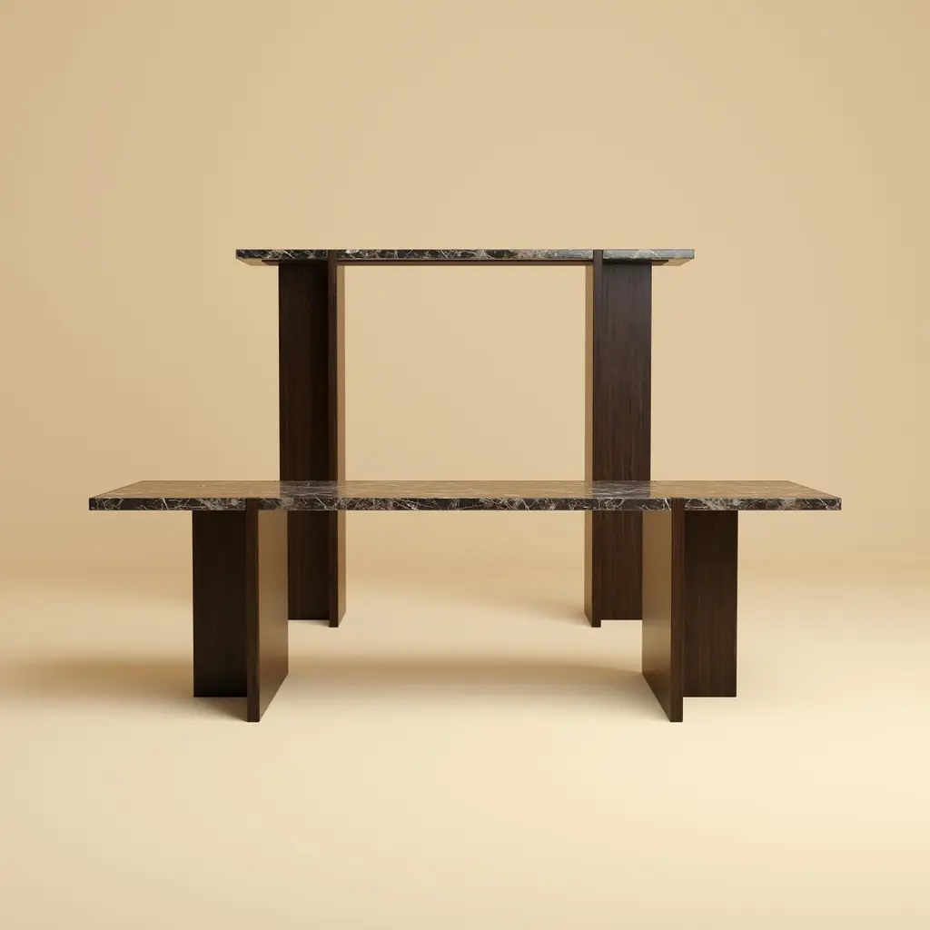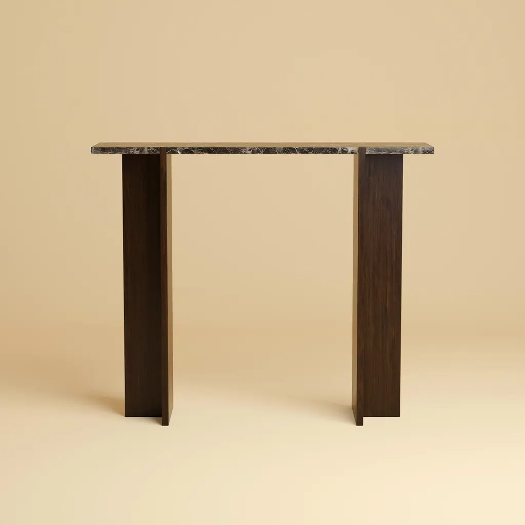 Premium Marble And Oak Console Table - Emperador Dark Brown