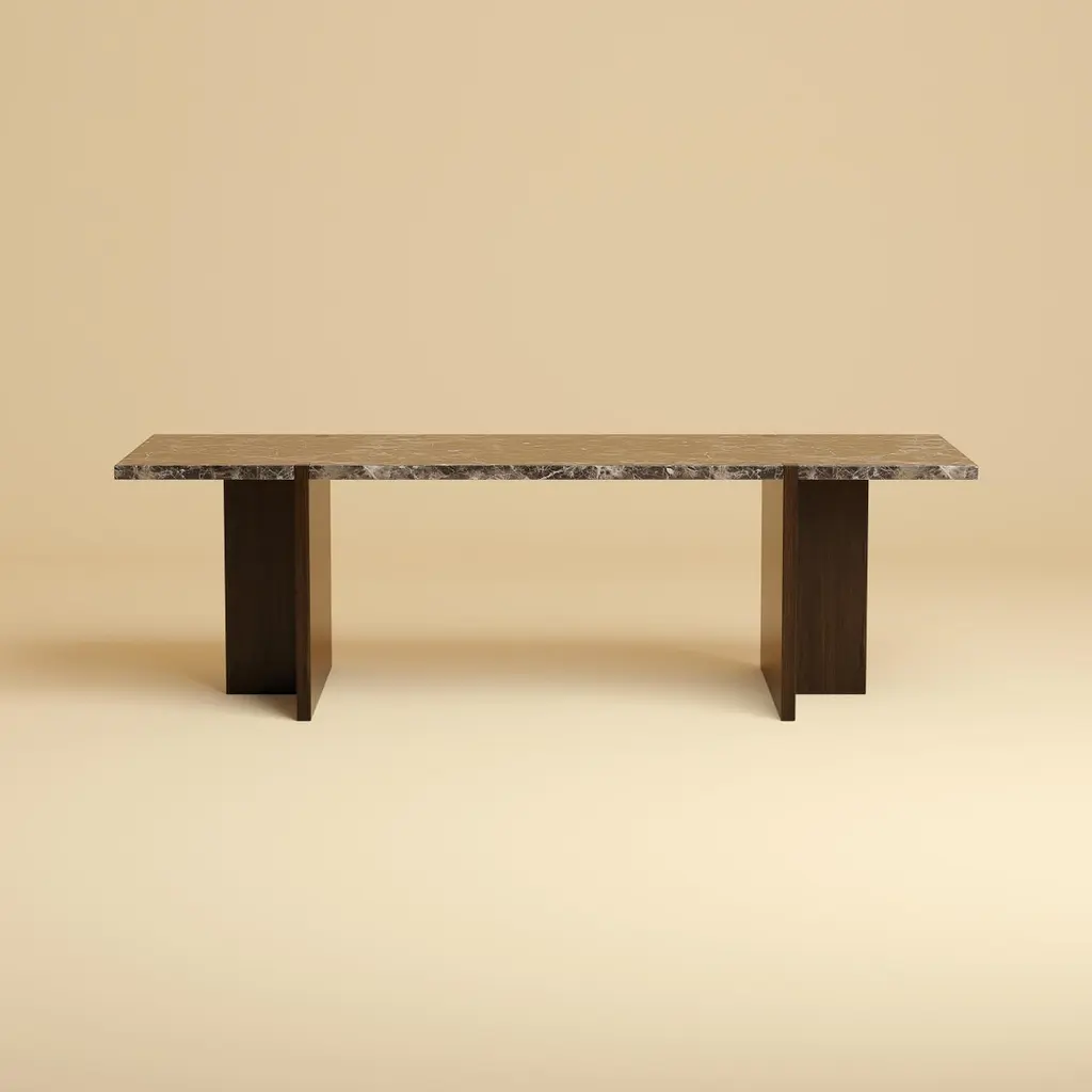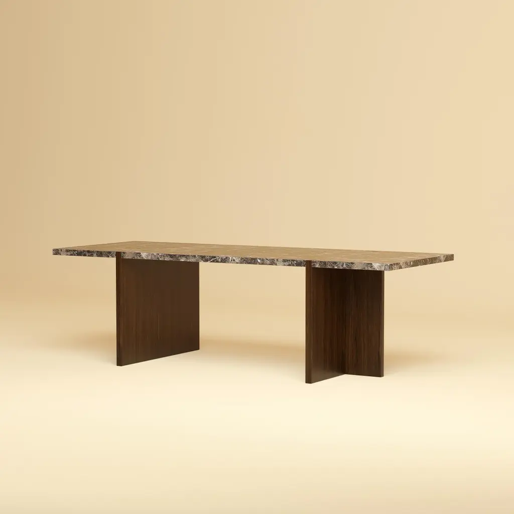 Premium Marble And Oak Lounge Table - Emperador Dark Brown