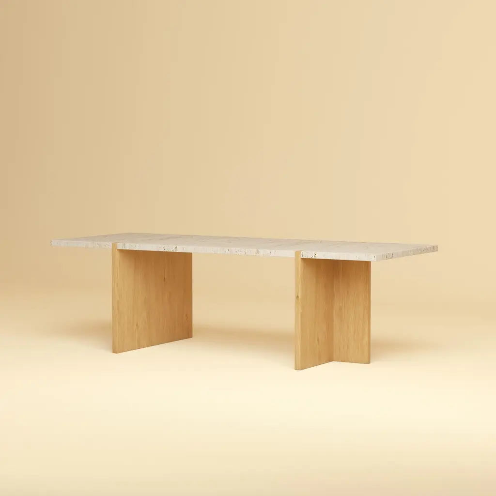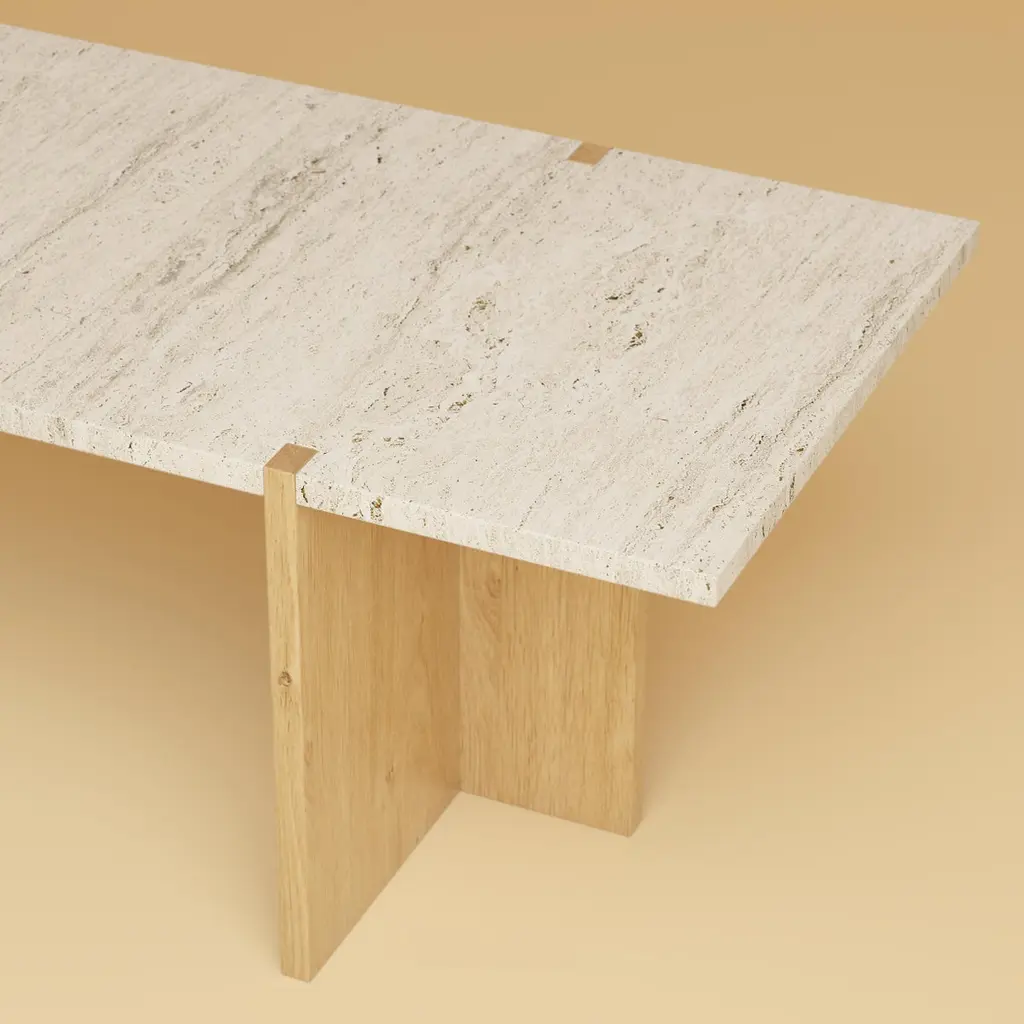 Palm Lounge Table by Lebanto – Luxurious Marble or Travertine with Oak Interlocking DetailThe Palm Lounge Table by Lebanto is a masterpiece of modern design and Italian craftsmanship, featuring a luxurious marble or travertine tabletop and solid oak legs. This elegant lounge table stands out with its unique interlocking leg detail, where the solid oak legs seamlessly connect with the tabletop, creating a striking and artistic focal point. The Palm Lounge Table effortlessly combines natural materials with innovative design, making it perfect for adding a touch of sophistication to any living room or lounge space.The Palm is available with your choice of premium marble or travertine, offering a natural, high-end finish that pairs beautifully with the warmth and durability of solid oak. Its minimalist design and intricate craftsmanship make it a versatile addition to both contemporary and classic interiors, enhancing your space with its clean lines and organic textures.Key Features:- Premium Marble or Travertine Tabletop: Available in luxurious finishes for a timeless, high-end look.- Solid Oak Legs: Sturdy, sustainable wood featuring an elegant interlocking design with the tabletop.- Handcrafted in Italy: Created by skilled artisans with a focus on quality and attention to detail.- Unique Interlocking Leg Detail: The legs connect with the tabletop in an artistic and functional design that stands out.- Elevate your living space with the Palm Lounge Table by Lebanto, where Italian craftsmanship and natural materials come together in a truly unique and luxurious design.Order Now to experience the beauty of this statement piece in your home!