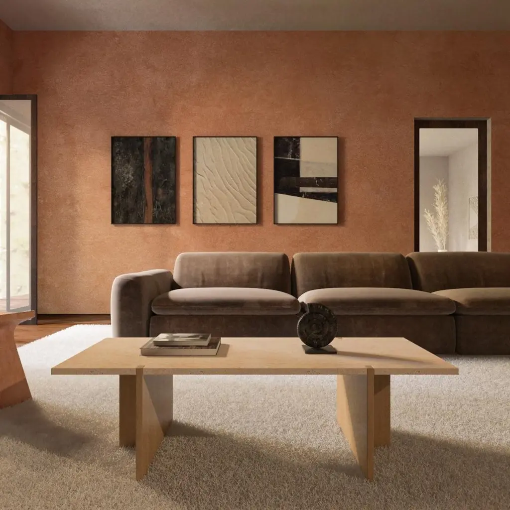 Premium Marble And Oak Lounge Table - Roman Travertine