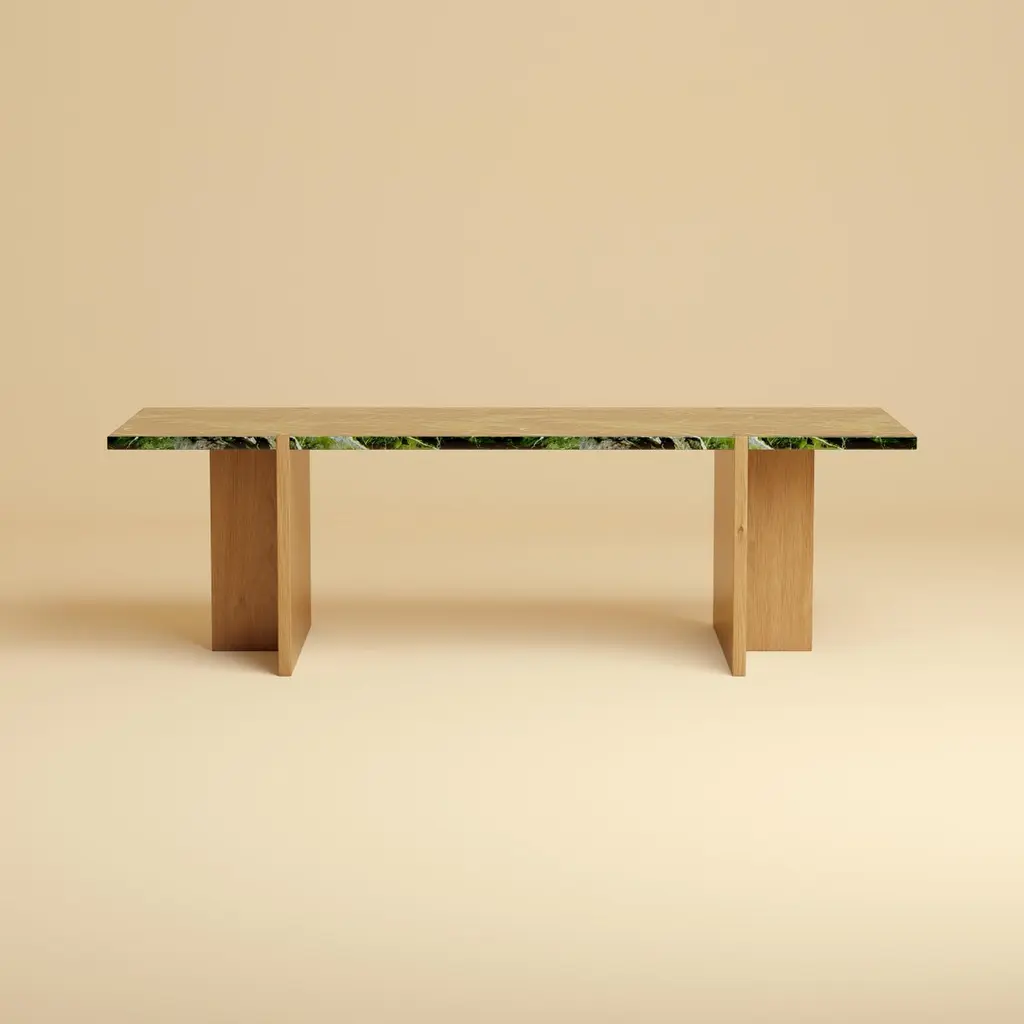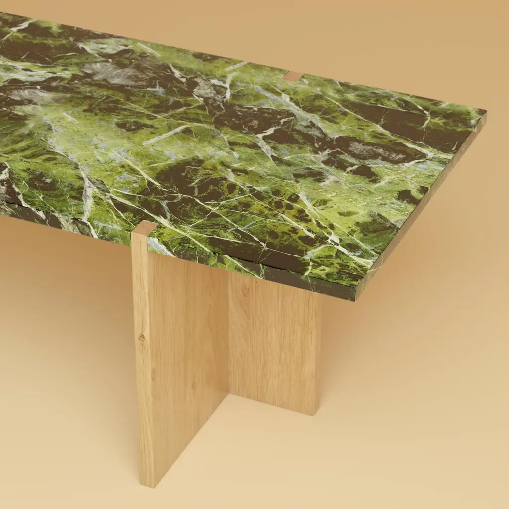 Premium Marble And Oak Lounge Table - Verde Tifone Green
