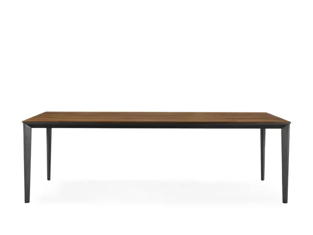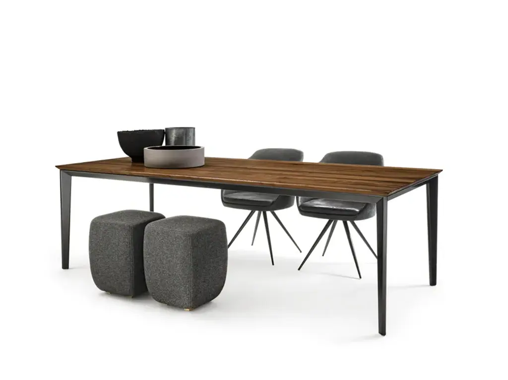 Prime is a table with top made of solid wood in glued lists, with straight sides and base in iron.STANDARD VERSION: IRON BASE LACQUERED RAL 9005 JET BLACK (B2)AVAILABLE FINISHES - TOPA1: walnut without knots, walnut with knotsA2: oak without knots, oak with knots, cherryAVAILABLE FINISHES - BASEB2: lacquered iron: irondust, RAL (selected colours only)B3: matt brushed lacquered iron: antique bronze, steel, titanium