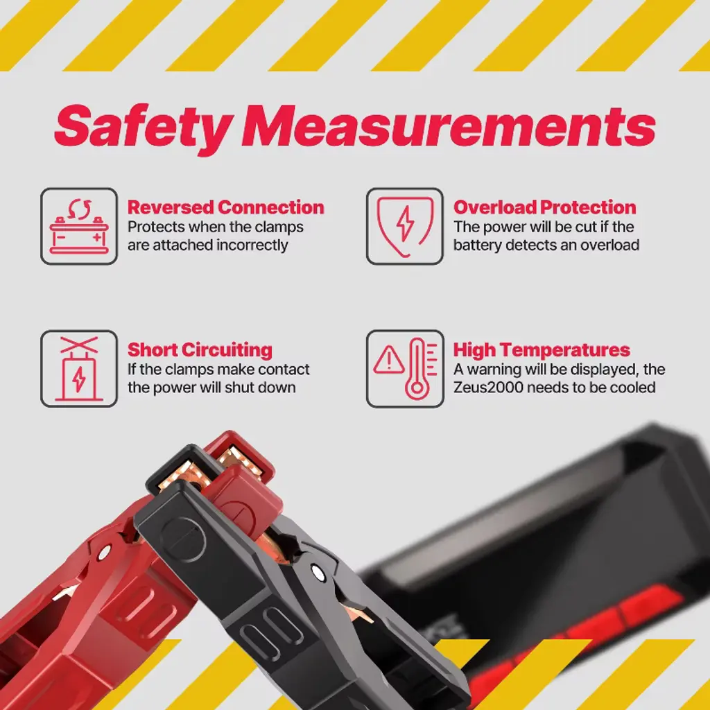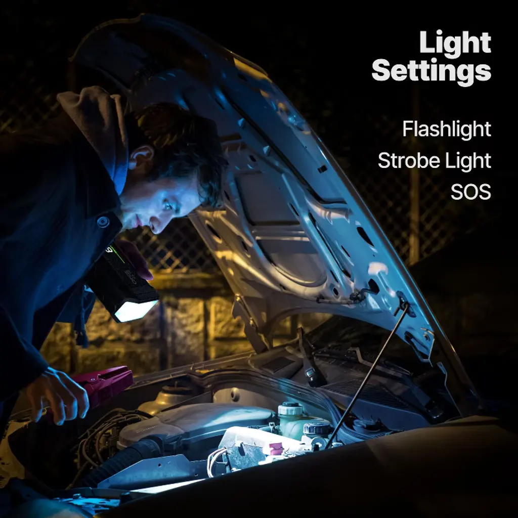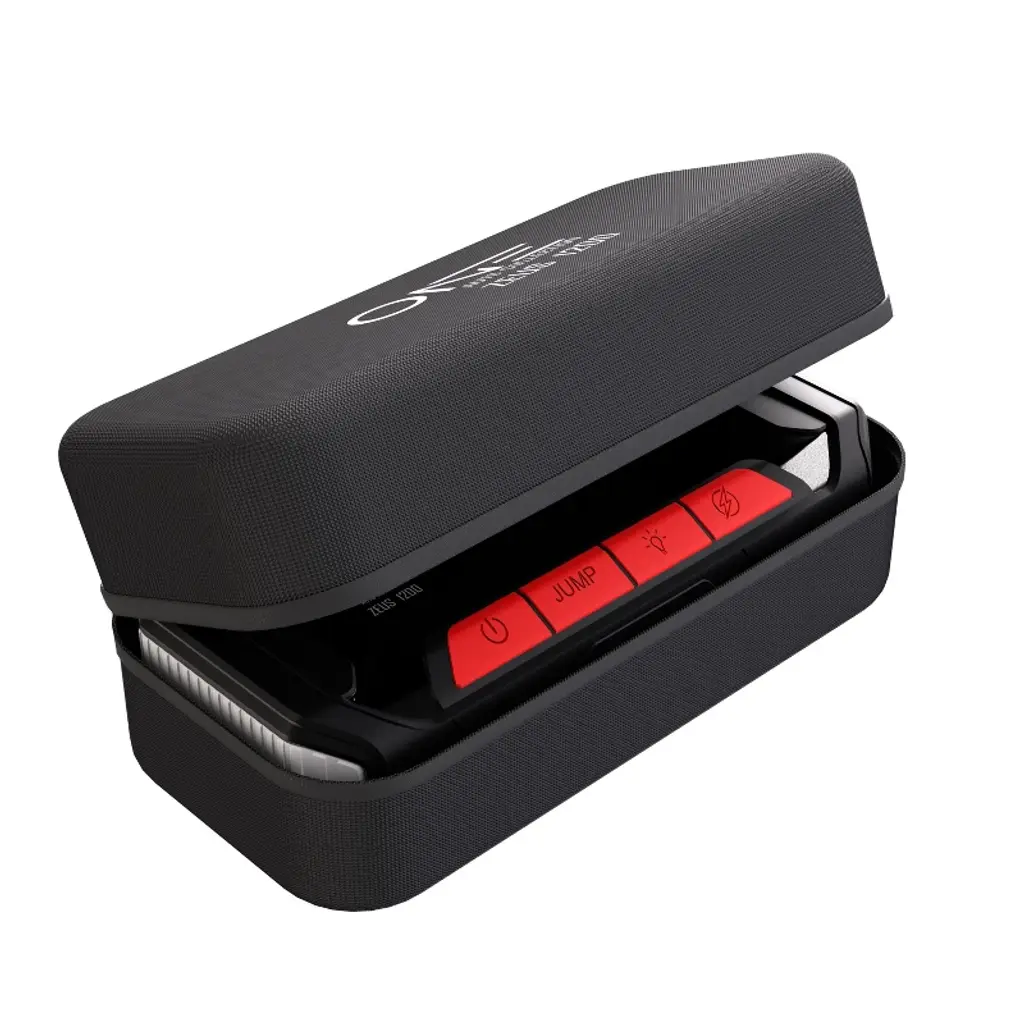 The ONE Jump Starter is the ultimate road trip companion. Safely and easily jump start your vehicle with this 1200A jump starter while keeping all your devices charged with the built-in power bank. Safe and Easy to Use Car Jump Starter Have peace of mind knowing you can easily jump your car or truck with the ONE Portable Car Battery Charger. The 1200A peak current lets it start gas engines up to 7L and diesel engines up to 5L, so you are never left stranded on the side of the road. The jumpstarter comes with built-in safety features to ensure safe, spark-free operation. Versatile Road Trip Companion This portable jump starter packs extra features that make it the perfect companion for your next road trip. The built-in 12,000 mAh battery pack with 65W USB PD makes for ultra-fast two-way charging. Quickly charge up the battery pack before a trip, or keep your mobile devices charged on long adventures. The LED flashlight allows safe use even at night and comes with three modes – strobe, SOS, and warning. Portable and Reliable The compact design with included storage bag takes little space in the glove box or trunk of your car, so you can always be prepared. The 24-month stand-by means this jump starter will not lose charge over time, so it is ready when you need it. Plus, with the rugged and dust-proof casing, the ONE 1200A Jump Starter is ready to handle any adventure.