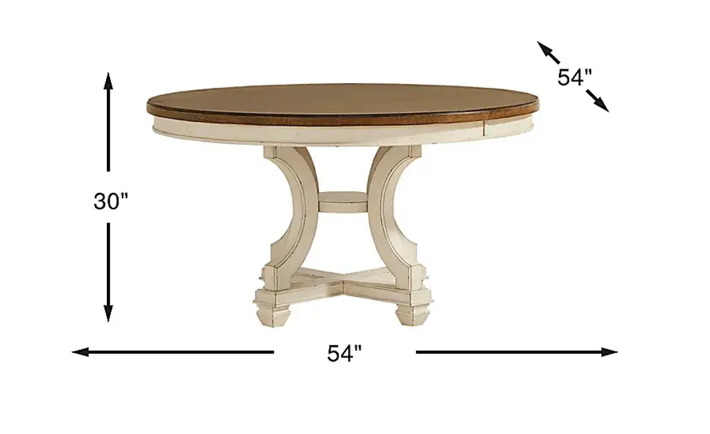 The graceful ease of a sun-drenched morning in a countryside manor comes home in the Provence collection's timeless character, thoughtful craftsmanship and natural textures. This inviting dining table features a round top with rich brown oak veneers and a double pedestal base with warm white birch veneers. With a graceful hourglass silhouette, this elegant base feature graceful curves and a layered cross-shaped plinth bottom.