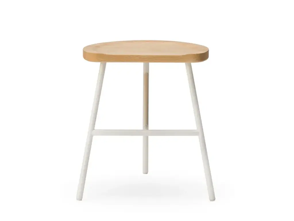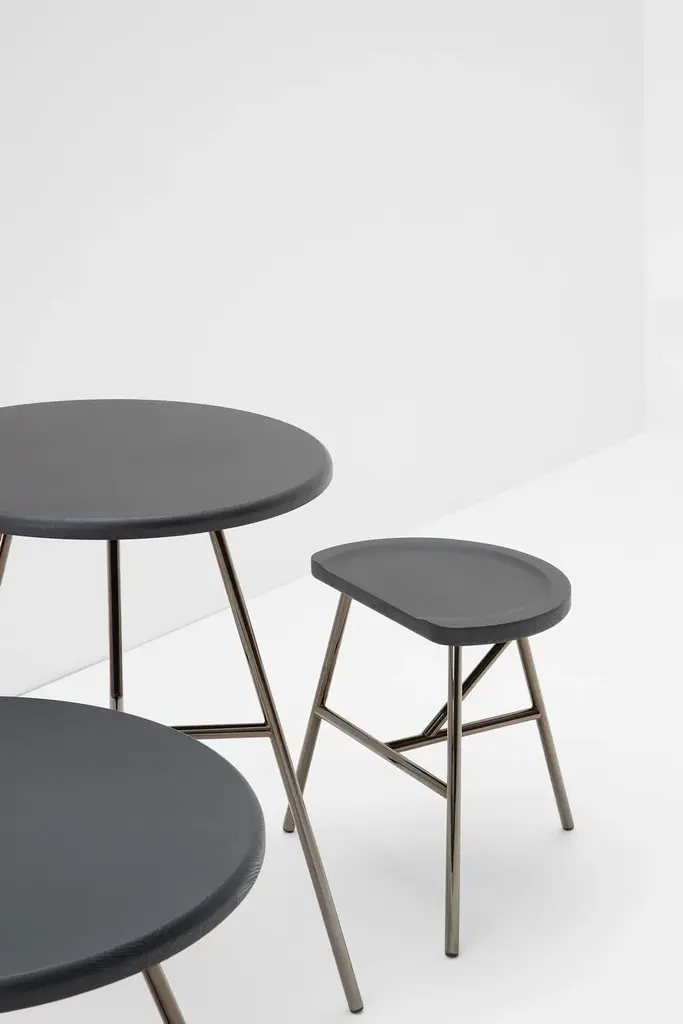 Puccio 720 is a round table with a steel frame and a solid ash wood top.Puccio is a collection developed from a reflection on milking stools—seats without design or designer that, due to their functionality, have endured unchanged through the centuries.Over time, it has evolved to include not only stools but also tables and chairs.Designed to furnish even the most confined spaces, it now features a lightweight, compact chair with a backrest completing the base.In addition to the ash wood version, which expresses the warmth of wood, the Puccio family is also available in steel.