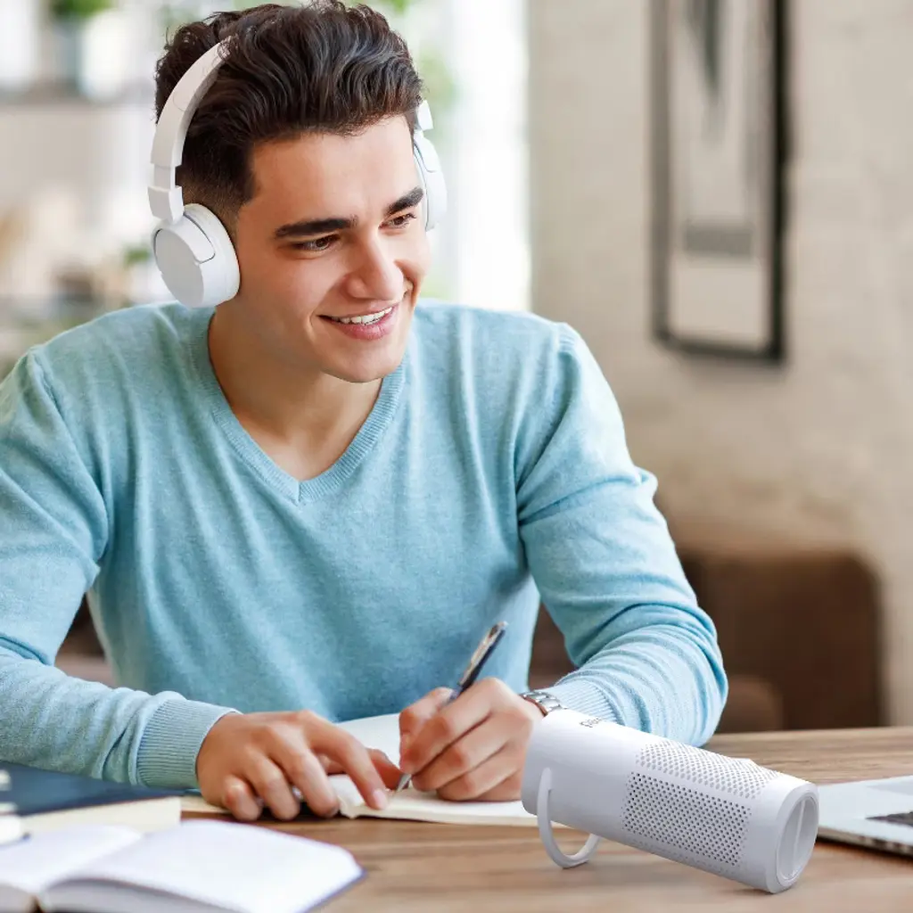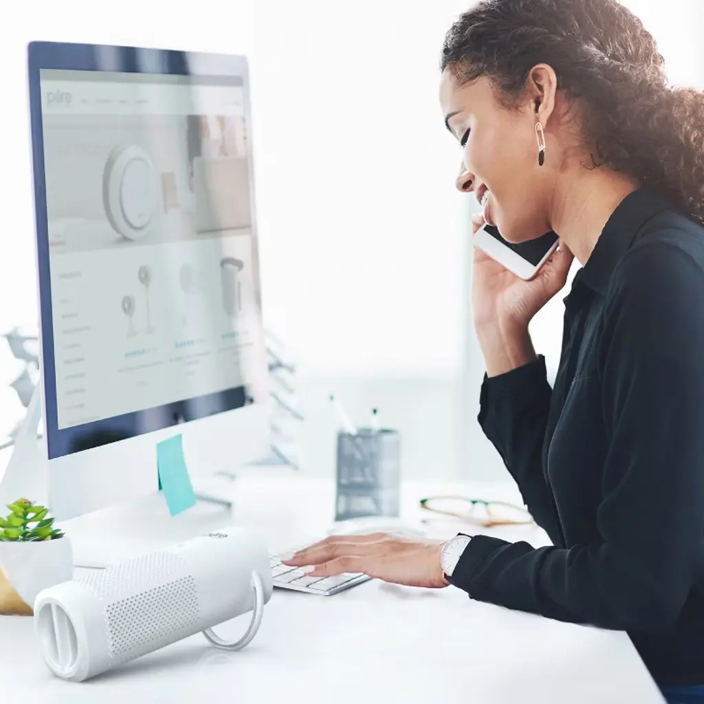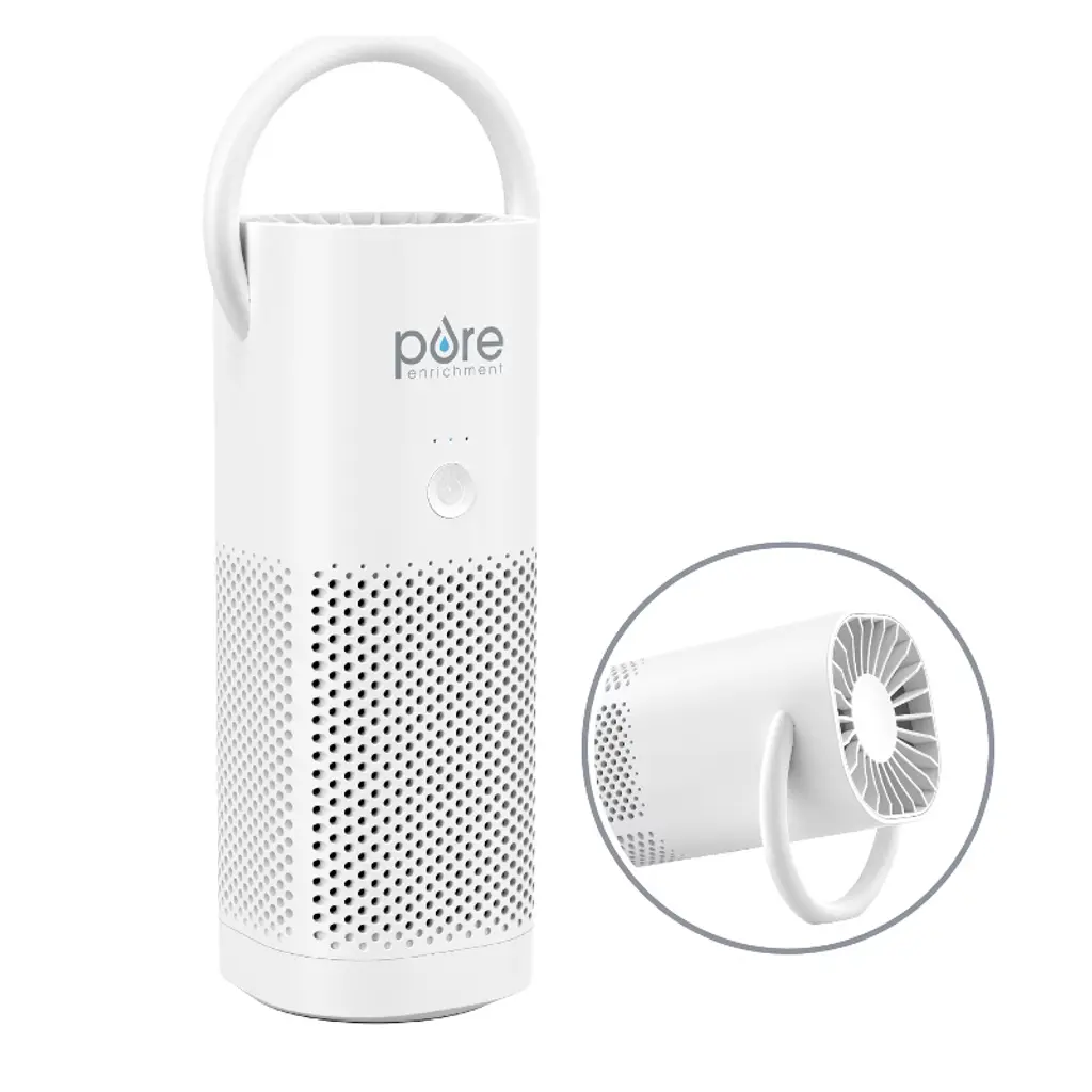 Breathe in fresher air with the PureZone™ Mini Air Purifier from Pure Enrichment®. This travel-friendly purifier features a state-of-the-art filtration system that expertly cleans the air in every small setting; from offices to classrooms to hotel rooms and more! Choose between 3 fan speeds to easily remove irritants and odors from the air, like dust, dander from pets, and seasonal pollen. The lightweight, handled grip makes it simple to carry from room to room. It’s perfect for your home office, cubicle, car, living room, and so much more. Plus, it packs up nice and neatly in any suitcase for travel. This mini air purifier is the perfect solution for better air on-the-go.