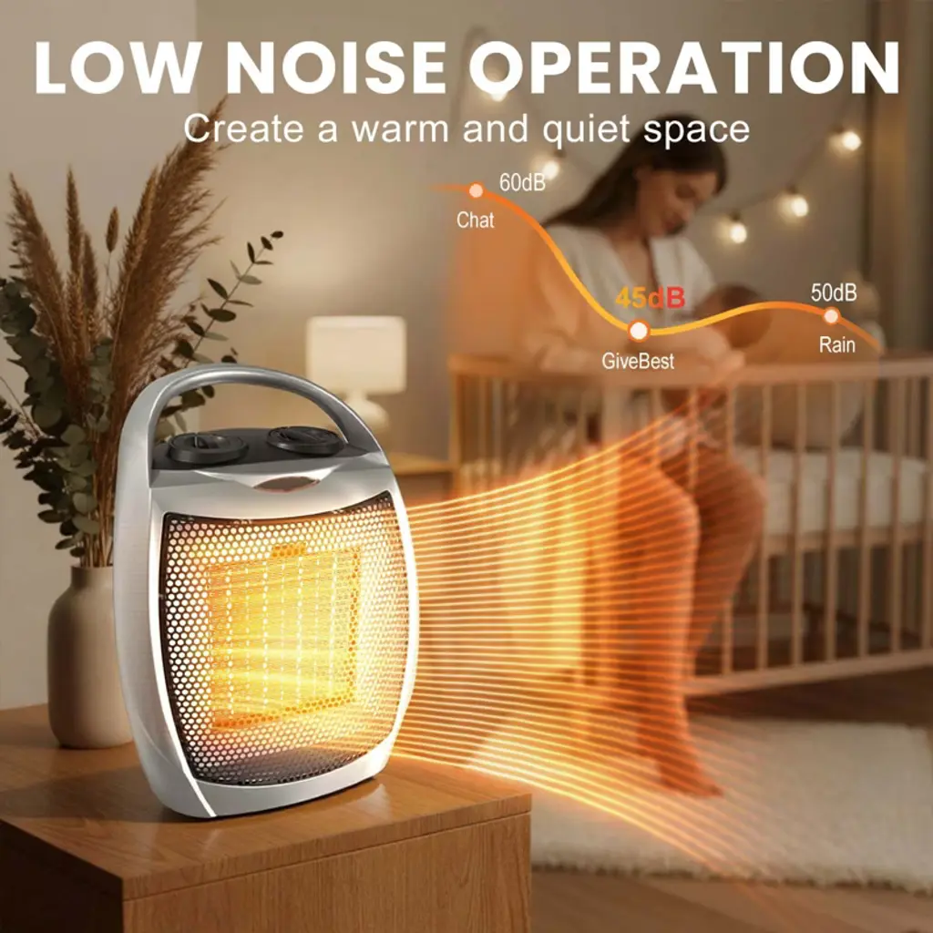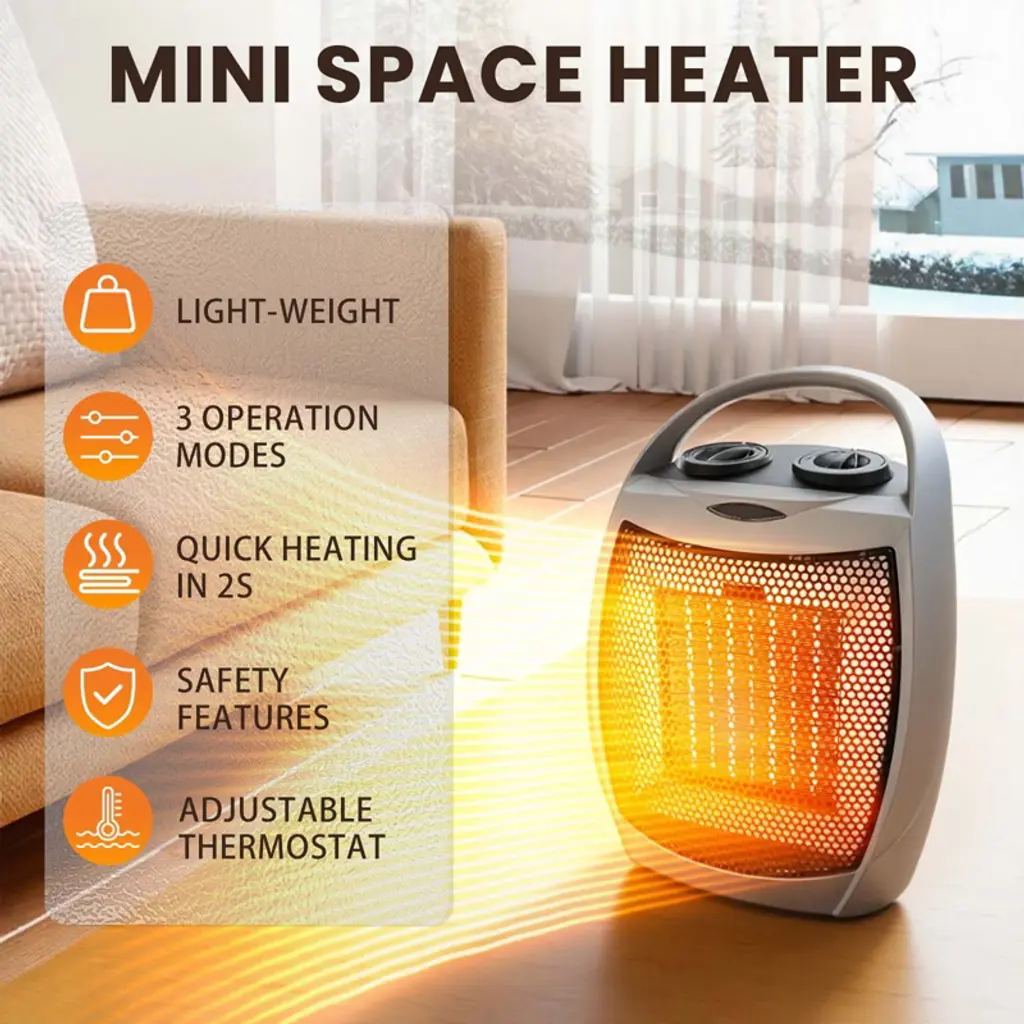 R.w.flame Portable Electric Space Heater, Small Ceramic Heater Fan With Thermostat, Overheat Protection,fast Heating For Home/office, Silver