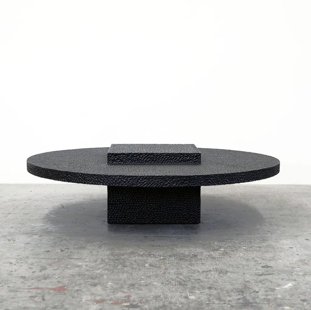 Maple round table sculpted by John Eric ByersR2 maple round low table sculpted by John Eric ByersMaterials: Carved blackened maple.All works are individually handmade to order.John Eric Byers creates geometrically inspired pieces that are minimal, emotional, and modernly refined.John's individually handmade work is guided by purity in form, surface texture, structure, and respect for use of materials. Heralded as a leading American artist working in wood, permanent collections include the Smithsonian American Art Museum, the Philadelphia Museum of Art and the Museum of Arts and Design in NYC. Numerous awards include a Louis Comfort Tiffany Foundation Award, New York Foundation of the Arts Awards, and inclusion in the Smithsonian's Oral Archives of American Arts.