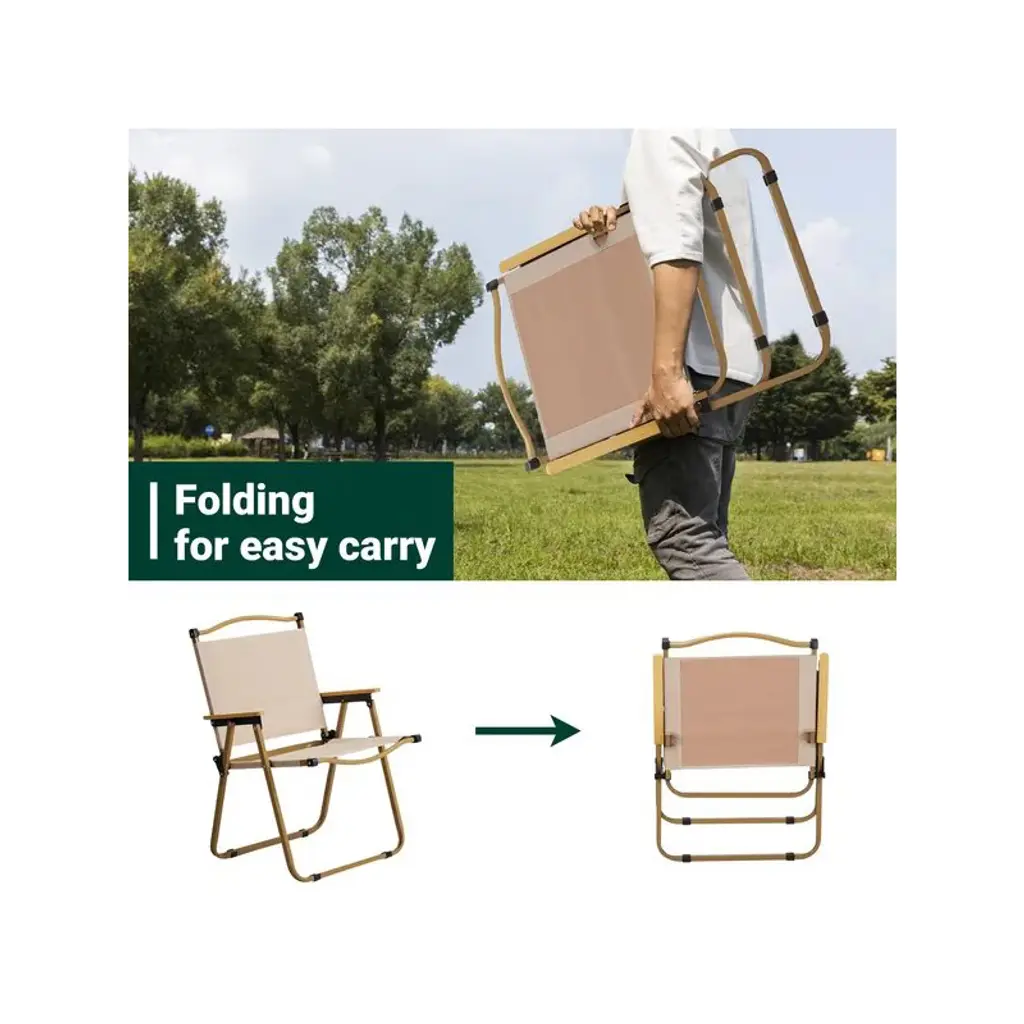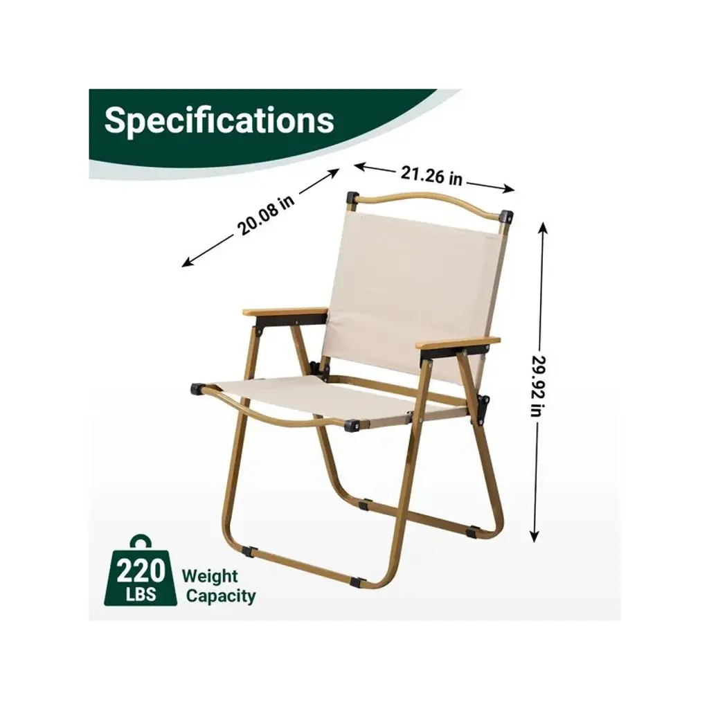 Details Enjoy nature in comfort and style with this 2 Pack of Khaki Camping Chairs, featuring a classic Kermit-style design that combines modern durability with timeless outdoor charm. Built for those who love both adventure and aesthetics, these chairs are perfect for camping, hiking, fishing, picnics, or relaxing in the backyard. Each chair is made with reinforced steel tubing that supports up to 120KG, paired with 600D Oxford fabric for superior comfort and durability. The wooden armrests add a touch of warmth and elegance, while also enhancing your arm support during long hours outdoors. Designed with portability in mind, these chairs fold compactly for easy transport and storage, making them a must-have for outdoor enthusiasts who value comfort without bulk. Whether you're gathering around a campfire or soaking up the sun at a park, these chairs deliver a stylish and reliable seating experience. Sturdy, foldable, and designed to impress ¡ª these Kermit-style portable camping chairs are your ideal outdoor companion.