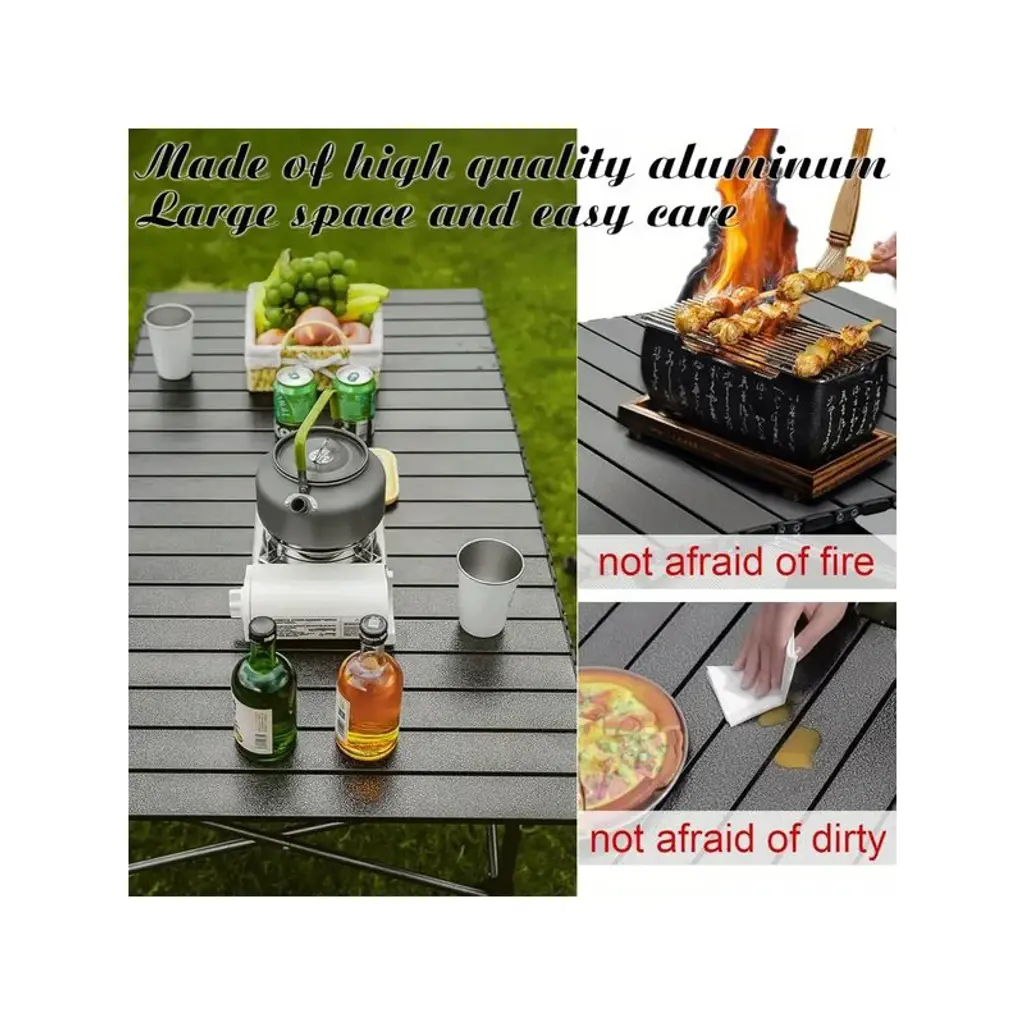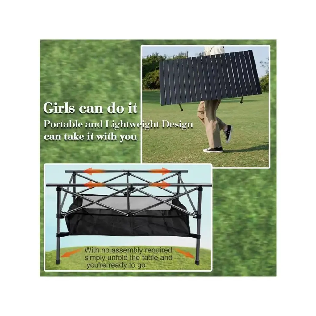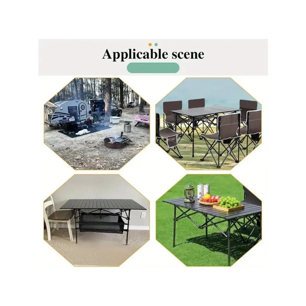 Foldable Camping Table ¨C Ultra-Portable, Compact & Sturdy for Outdoor Fun! Take your adventures up a notch with this lightweight, roll-up camping table! Perfect for picnics, BBQs, beach days, or even cozy nights at home, it packs down small but gives you plenty of space for food, drinks, or gear. The tough aluminum frame stands up to rough weather and rough handling, while the easy-fold design means you¡¯re ready to go (or go home) in seconds. Toss it in the included carry bag and bring the convenience anywhere¡ªbecause life¡¯s too short for wobbly, bulky tables!