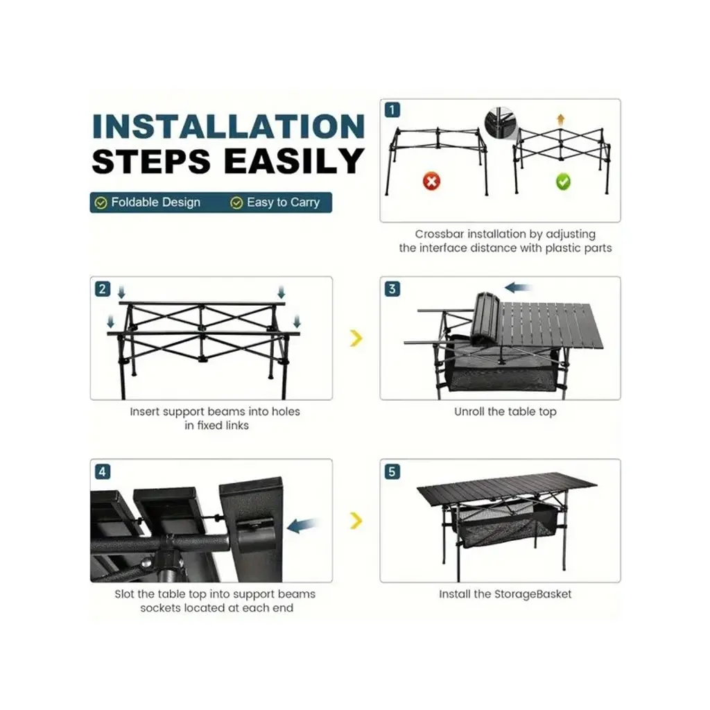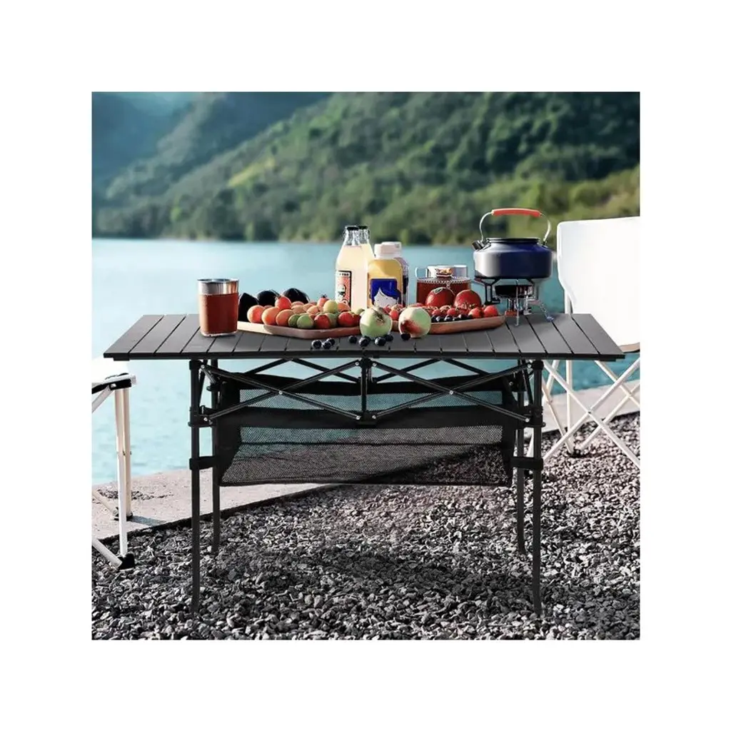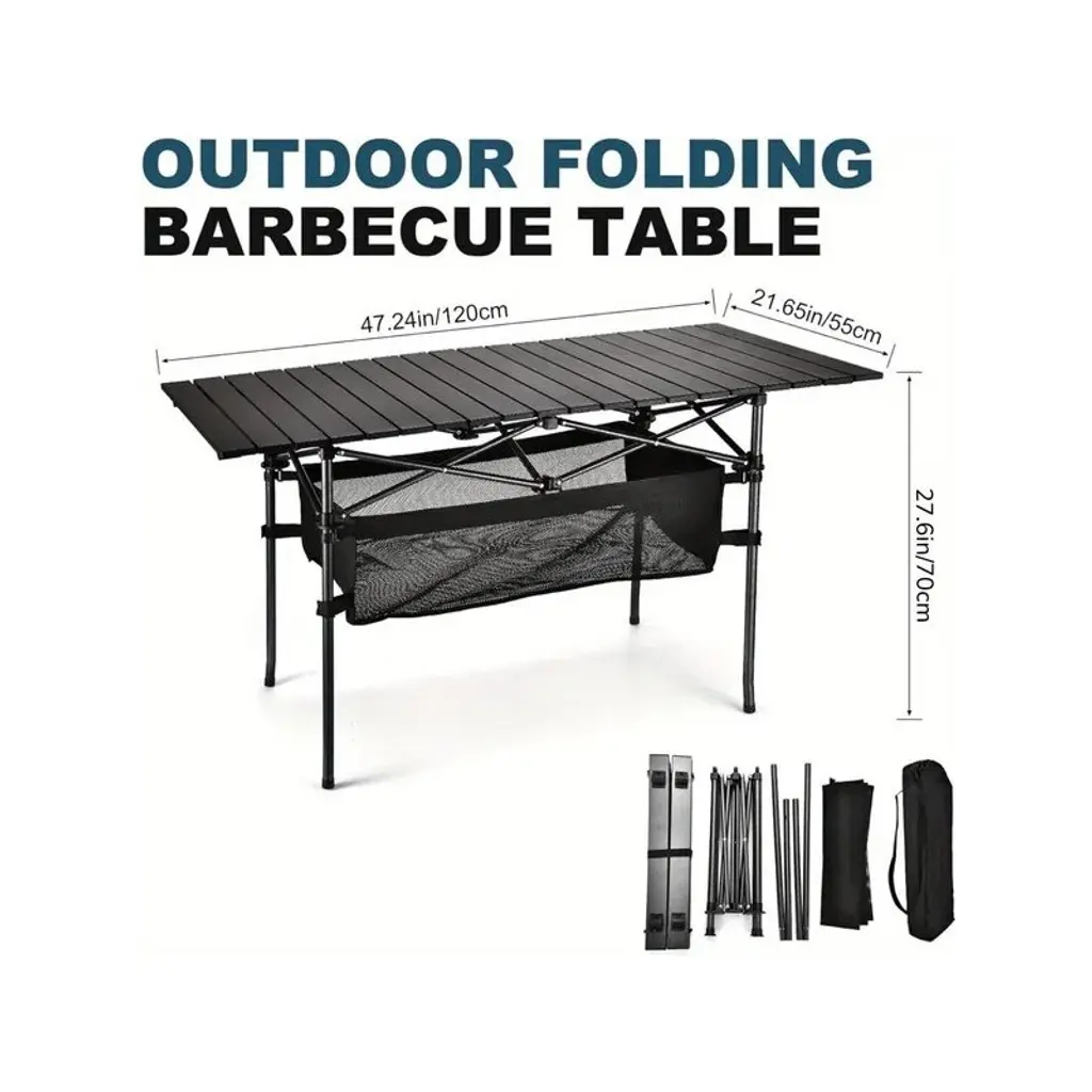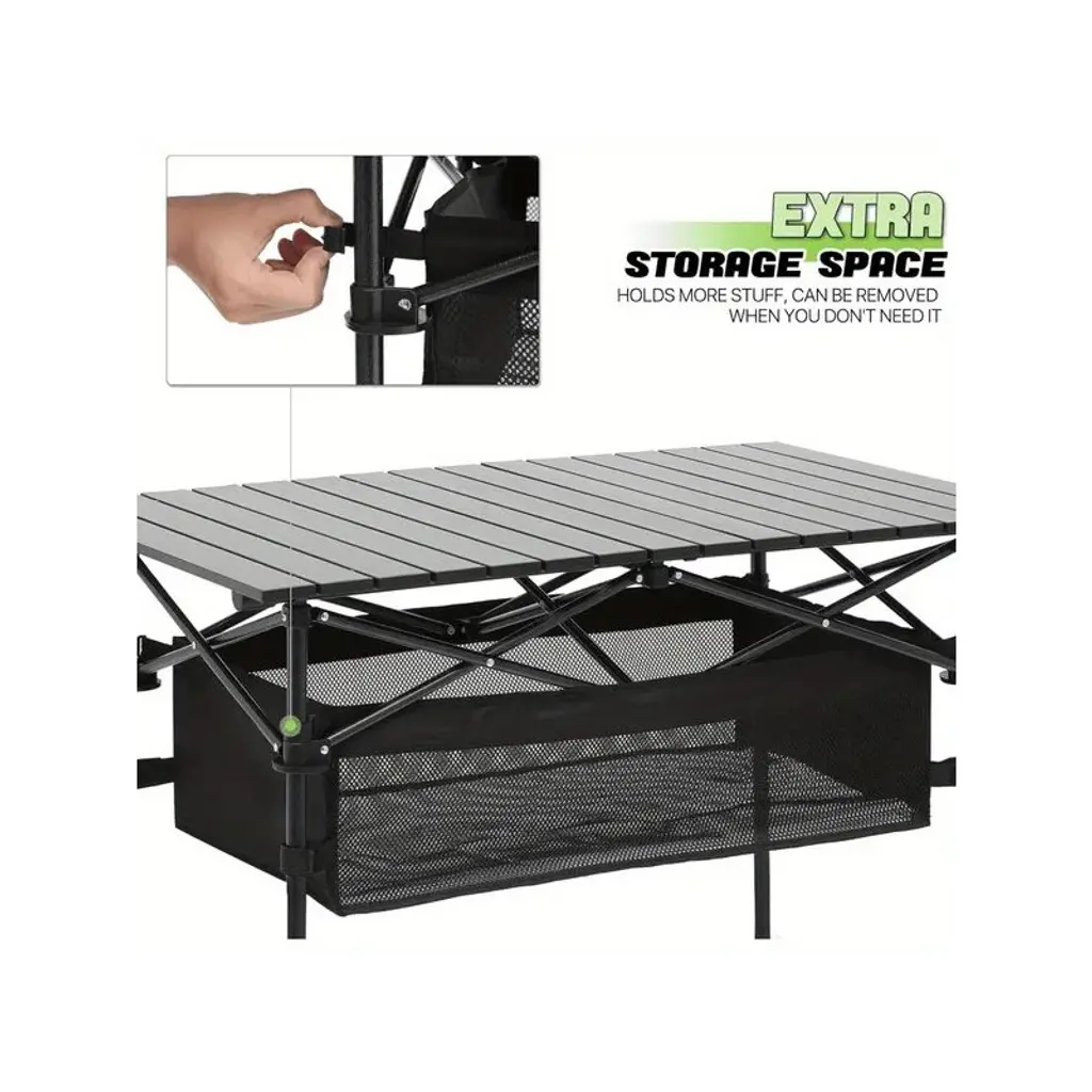 Foldable Camping Table ¨C Ultra-Portable, Compact & Sturdy for Outdoor Fun! Take your adventures up a notch with this lightweight, roll-up camping table! Perfect for picnics, BBQs, beach days, or even cozy nights at home, it packs down small but gives you plenty of space for food, drinks, or gear. The tough aluminum frame stands up to rough weather and rough handling, while the easy-fold design means you¡¯re ready to go (or go home) in seconds. Toss it in the included carry bag and bring the convenience anywhere¡ªbecause life¡¯s too short for wobbly, bulky tables!