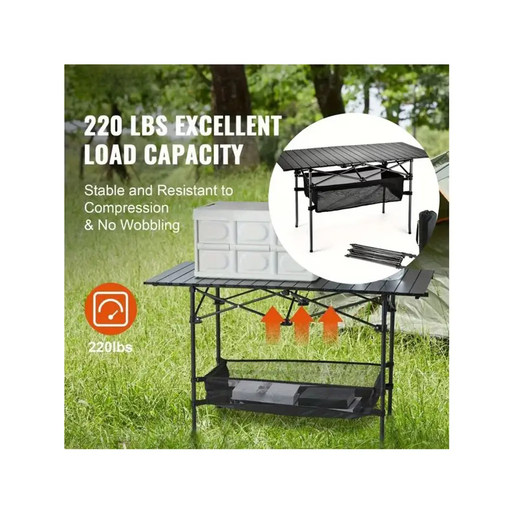 Racxily 47x22x27 Inch Folding Camping Table, Roll-up Ultra Compact Outdoor Portable Fold Up Lightweight Beach Table, With Large Storage And Carry Bag