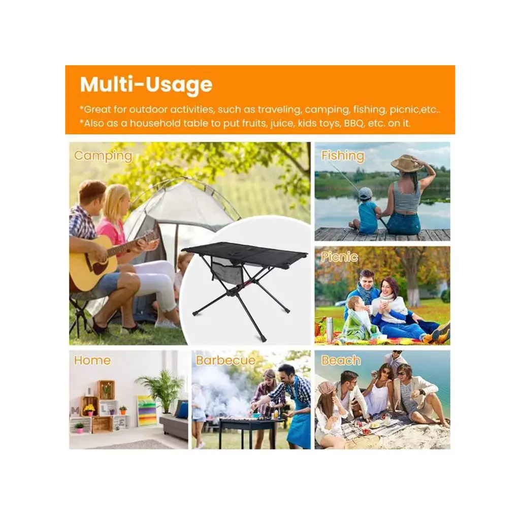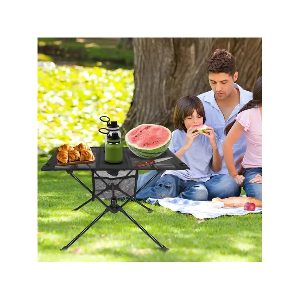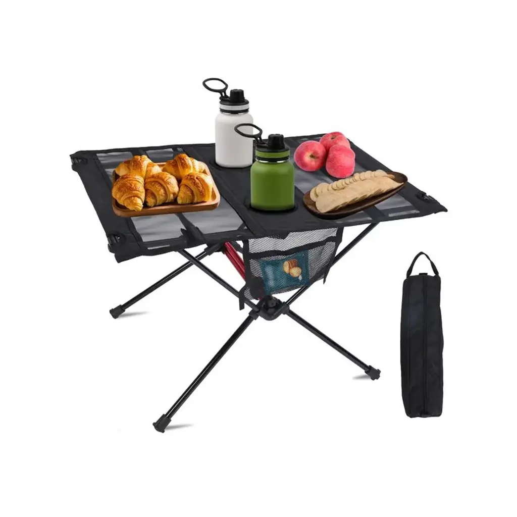 Racxily Portable Folding Camping Table Foldable Beach Table Aluminum Alloy Frame With 2 Cup Holders 2 Side Pockets Carry Bag