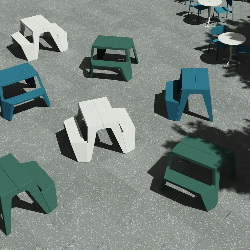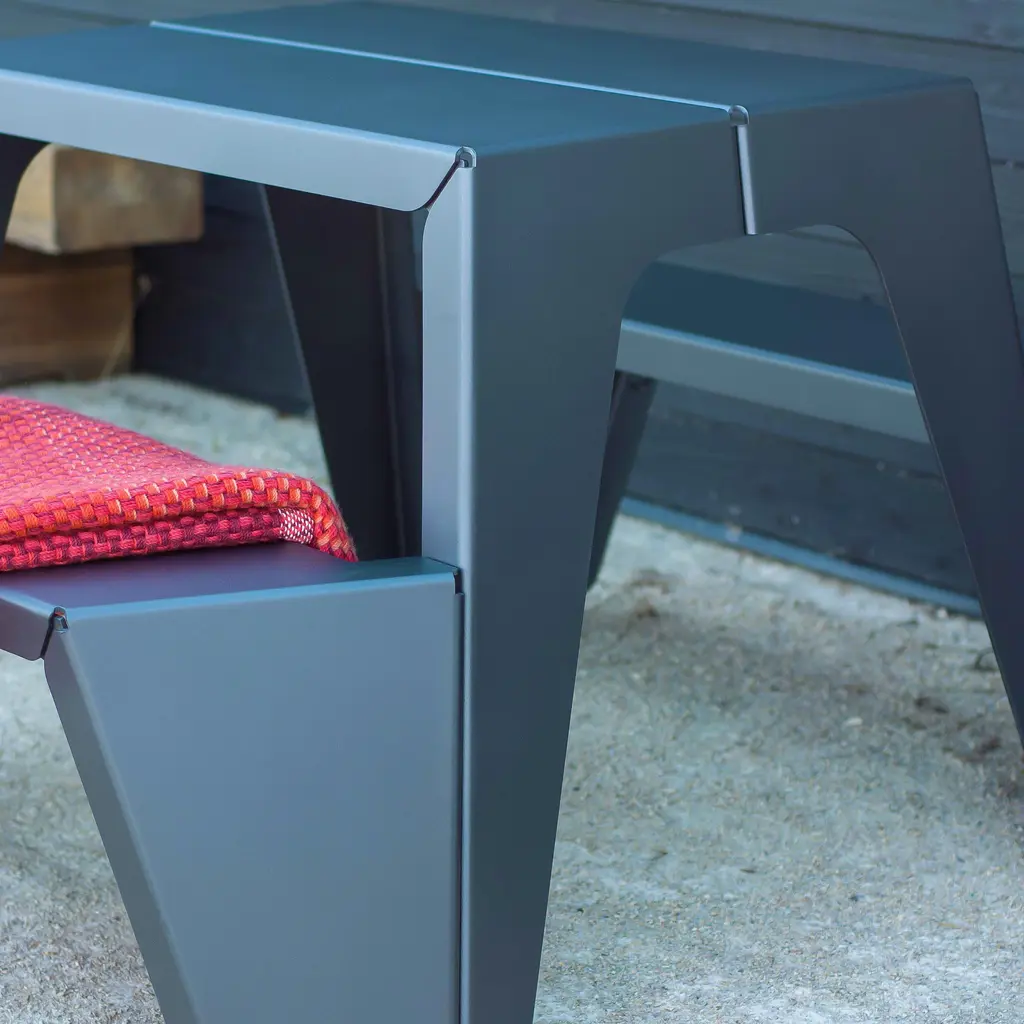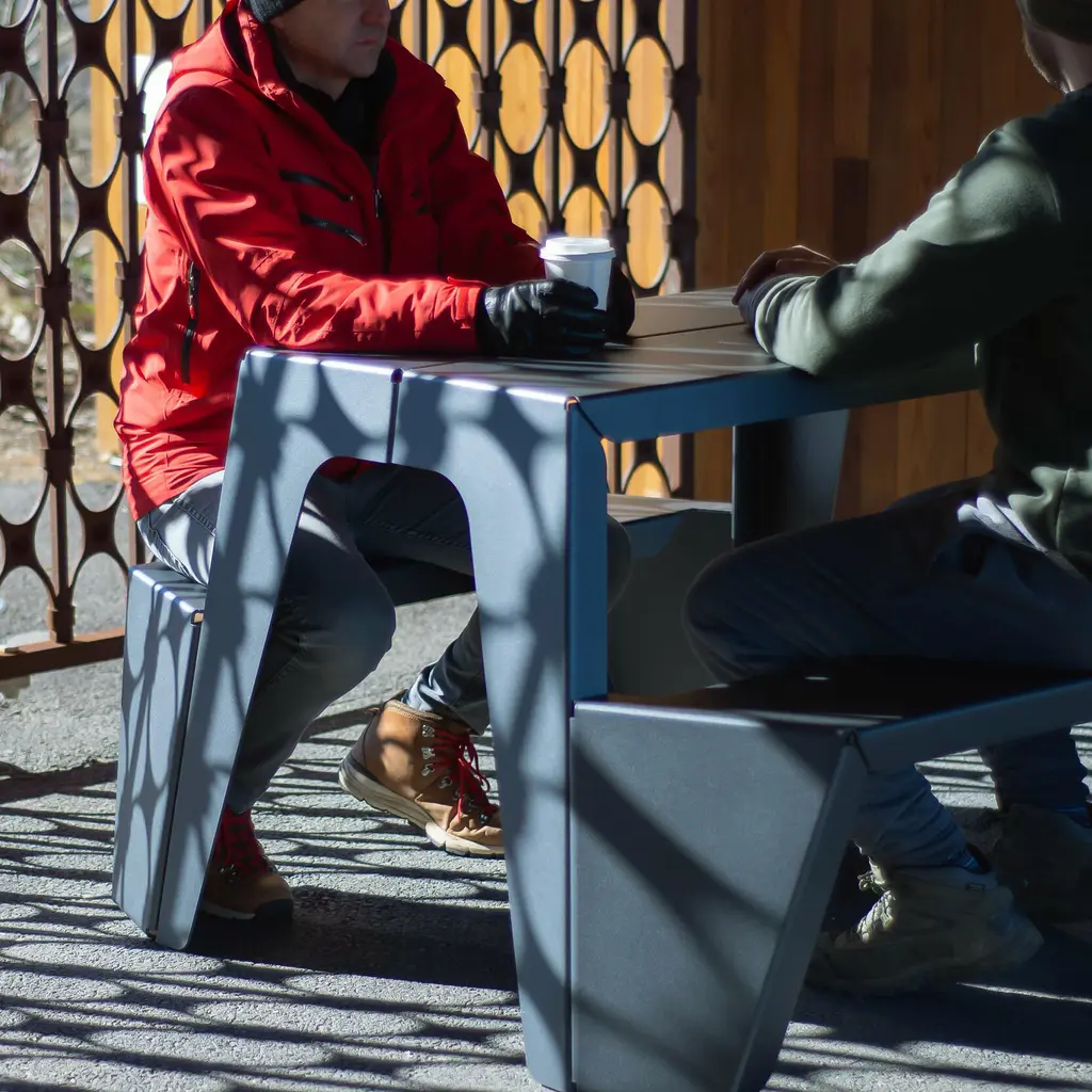 Enjoy a picnic with a special someone or get four friends together with Shift Rambler 36 table with two benches. Inspired by classic picnic tables, this design features four main components that create cozy seating areas on two benches and a spacious tabletop to hold your food and drinks. The compact size makes Rambler 36 ideal for two to four people, while also fitting in narrower spaces with ease. Crafted with a technique that minimizes waste, this picnic table is made of sturdy and durable aluminum. A powder-coated finish protects the material from the elements and brings the design to life with Pearl, Graphite, Moss, or Lake colors. Shift also offers this series of outdoor furniture with custom single-bench options, to accommodate wheelchair users. Stainless steel hardware is included. For single-bench versions, keep in mind that anchoring hardware should be used to prevent the table from tipping over.