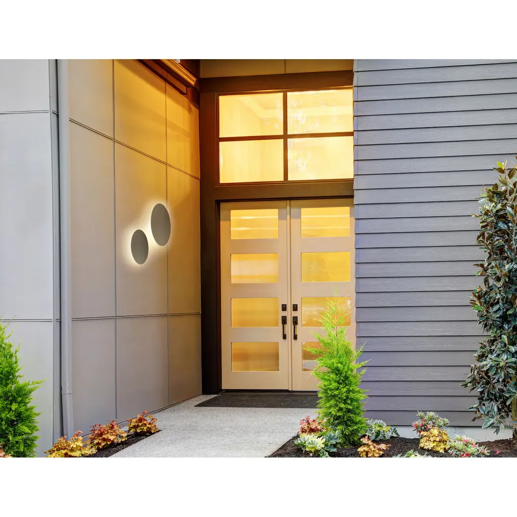Ramen is a playful circular sconce suitable for indoor or outdoor use. The magnetically-attached face plates, available in a variety of finishes, are interchangeable. A paintable plate (primed white) can maximize your customization capabilities. Customize