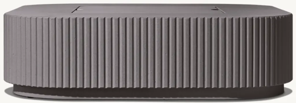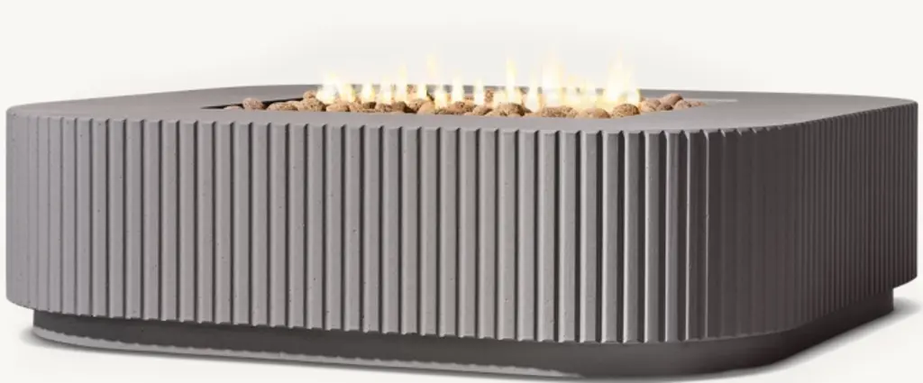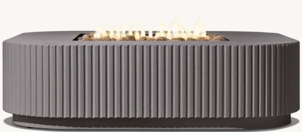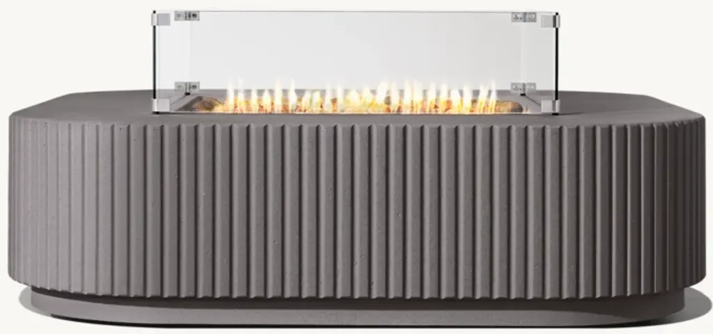 Rhythmic reeded detailing delivers textural dimension to our fire table's pared-down profile. Wrapped in radius curves for a fluid, organic feel, it's set on a plinth base that lightens the substantial silhouette. Handcrafted from weather-resistant composite concrete that offers a durable, lighter-weight alternative to stone or pure concrete.