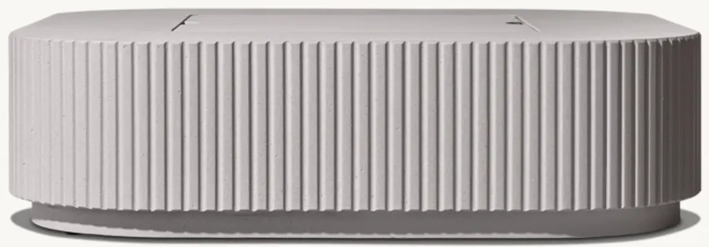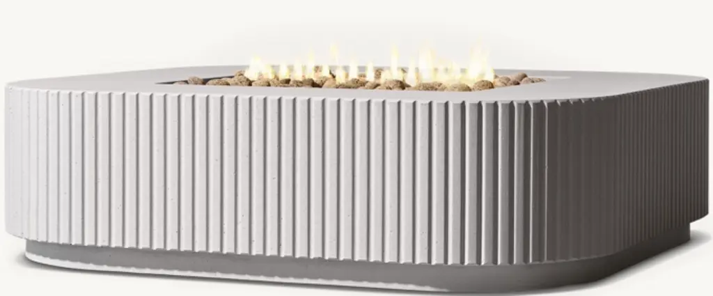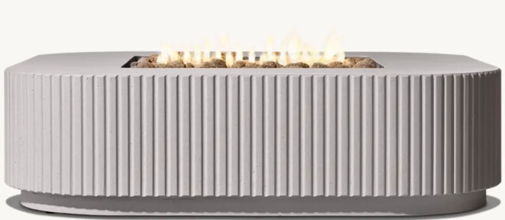 Rhythmic reeded detailing delivers textural dimension to our fire table's pared-down profile. Wrapped in radius curves for a fluid, organic feel, it's set on a plinth base that lightens the substantial silhouette. Handcrafted from weather-resistant composite concrete that offers a durable, lighter-weight alternative to stone or pure concrete.