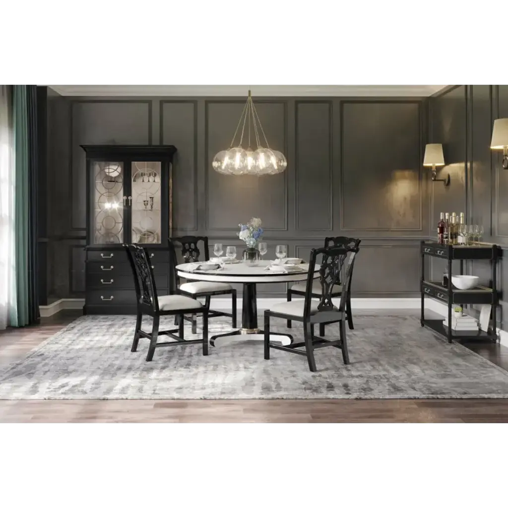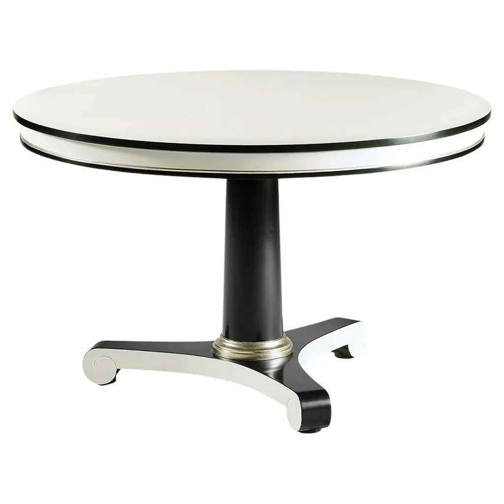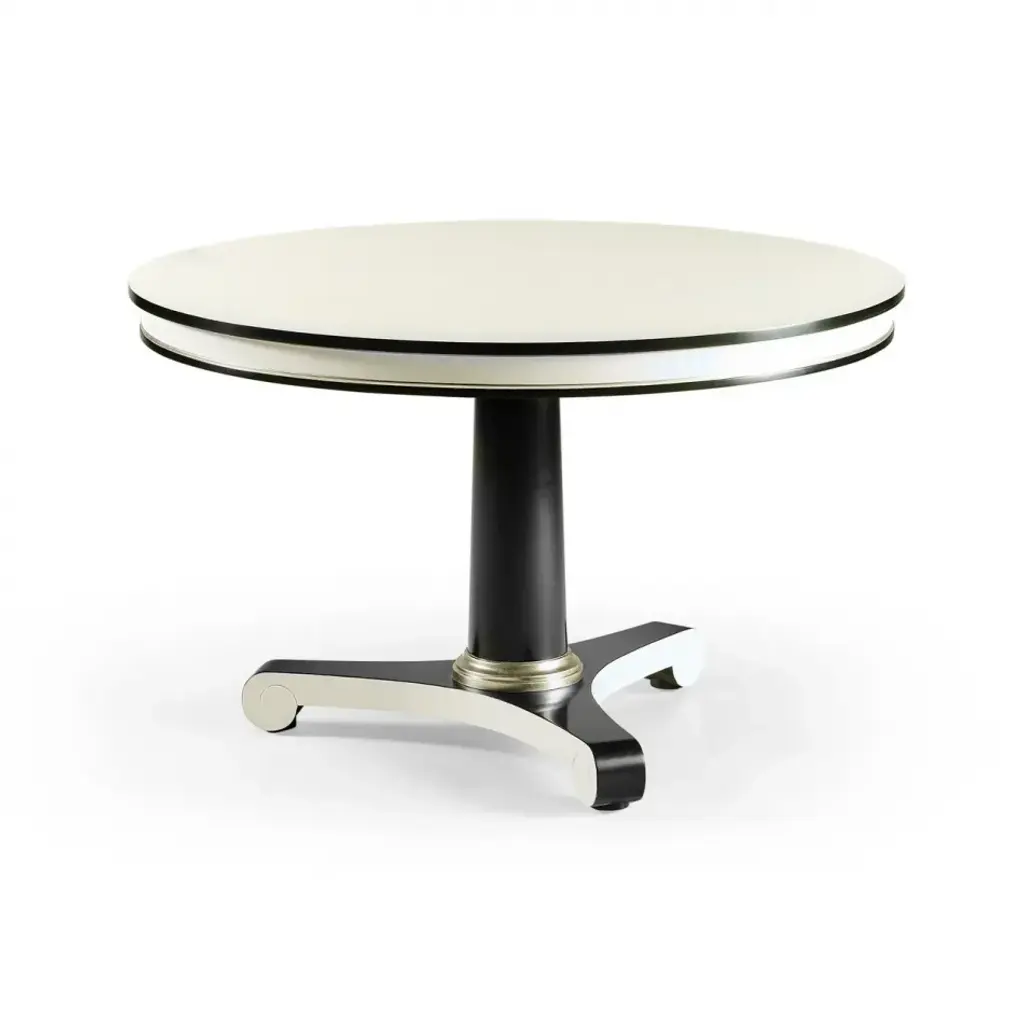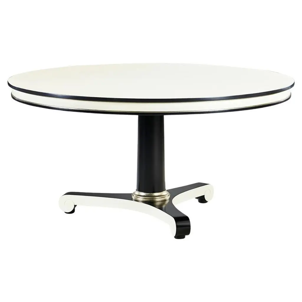 494776-48D-WDL (48") & 494776-60D-WDL (60") Inspired by the Biedermeier era, Dipole's clean lines, classic vibes and versatility make it suitable for a variety of settings - dining, foyer, office or living. Bold black and white lines are accented with silverleaf collars for the perfect amount of understated drama that compliments an array of styles.