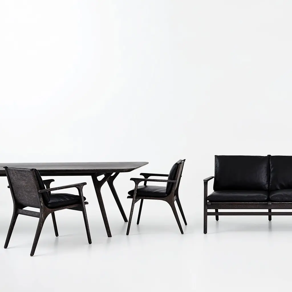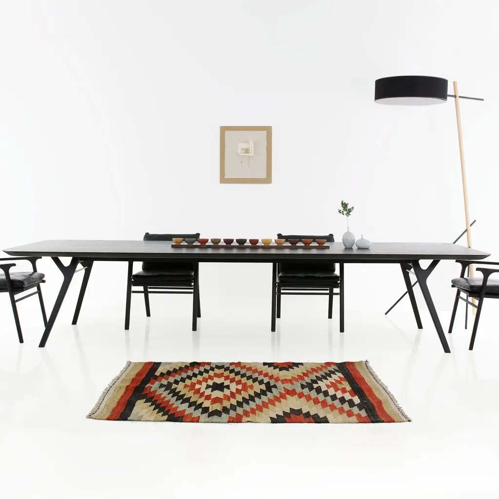 Resoundingly handsome but not overdesigned, this superb conference table embodies both the Danish Modern tradition and an eloquent Asian simplicity. Spanning more than 11 feet in length, it is crafted in solid ash with brass-plated detail and graced with a veneer laminate tabletop with an elegantly angled edge. Space Copenhagen designers Signe Bindslev Henriksen and Peter Bundgaard Rutzou aim for a global sensibility—also reflected in the maker Stellar Works, which combines state-of-the-art production expertise based in Shanghai with an international slate of acclaimed designers.