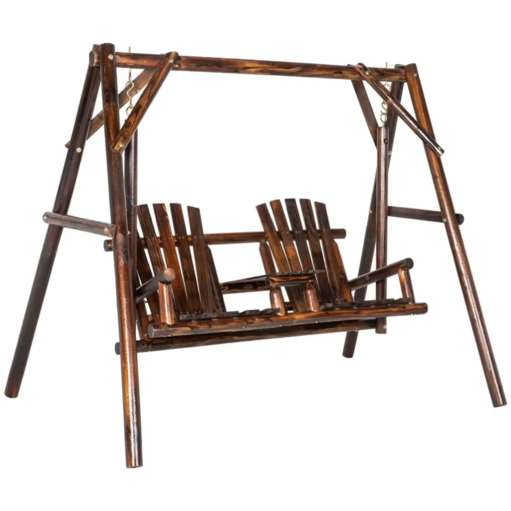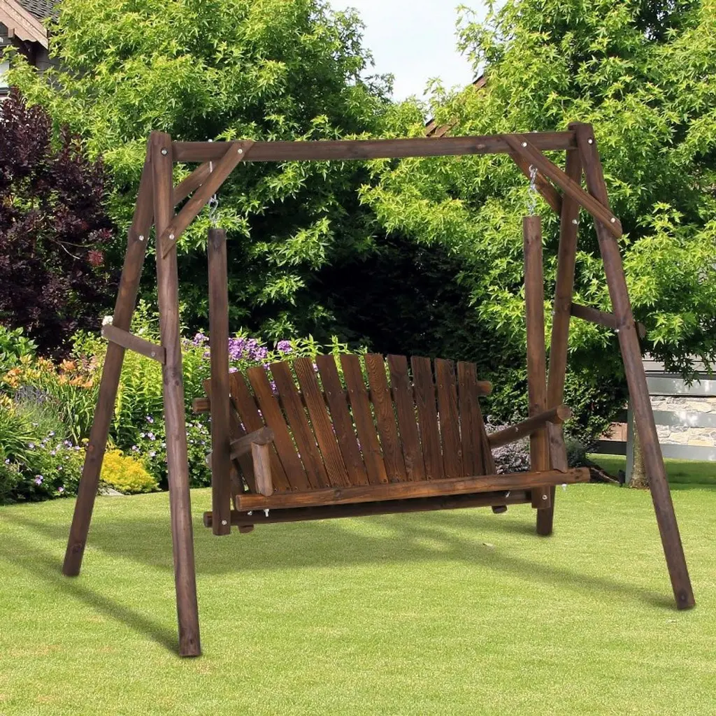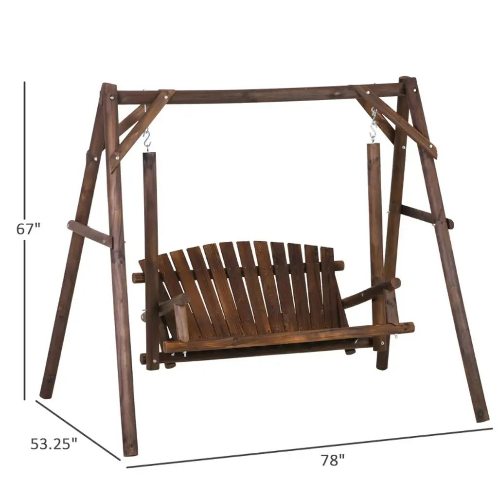 Resenkos 2-seat Swing Bench, Ergonomic A-frame, Stable Non-slip, Solid Wood Garden Swing, Carbonized