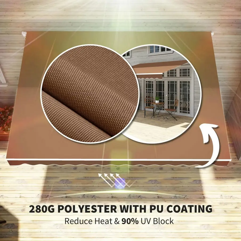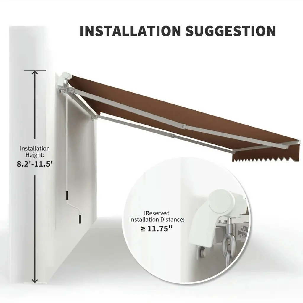 1. **Durable Construction**: The 12' x 10' Retractable Awning features a robust aluminum frame combined with a steel square tube for enhanced stability, ensuring long-lasting performance for your outdoor spaces. GVN Patio Awning, Outdoor Sun Shade Shelter Cover Awnings,12' x 10' Retractable Awning Patio Awnings Sun Shade Shelter with Manual Crank Handle,Coffee